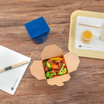 These takeaway boxes are made from thick paper and can easily hold hot and cold foods. Ideal for packing lunches for work!