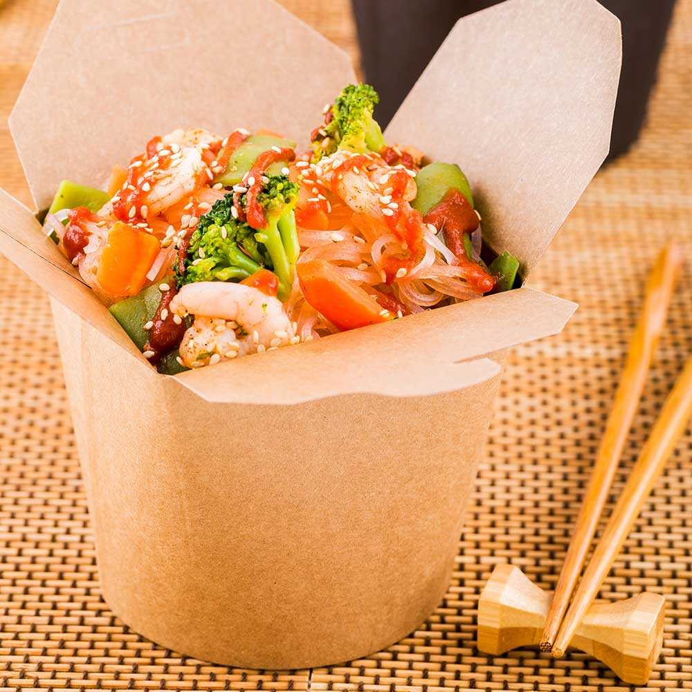 These takeaway boxes are made from thick paper and can easily hold hot and cold foods. Ideal for packing lunches for work!