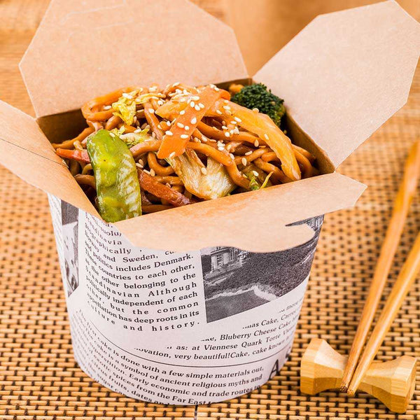 These takeaway boxes are made from thick paper and can easily hold hot and cold foods. Ideal for packing lunches for work!
