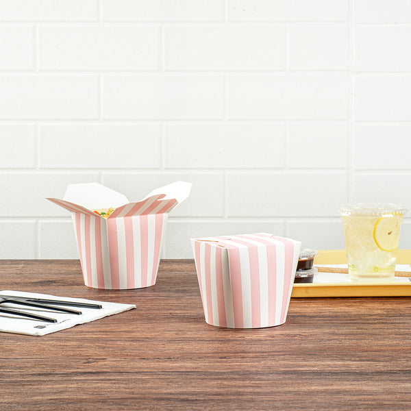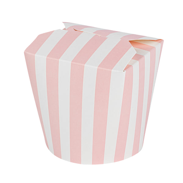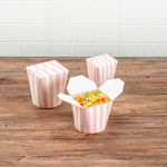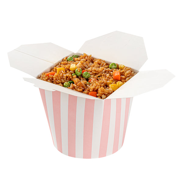 26 OZ ROUND PINK AND WHITE STRIPE PAPER NOODLE TAKE OUT CONTAINER