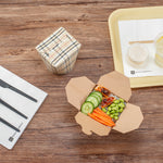 These takeaway boxes are made from thick paper and can easily hold hot and cold foods. Ideal for packing lunches for work!