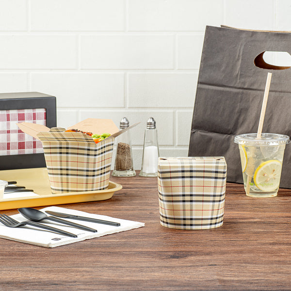 26 OZ ROUND PLAID PAPER NOODLE TAKE OUT CONTAINER