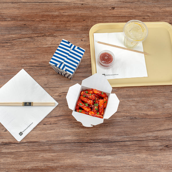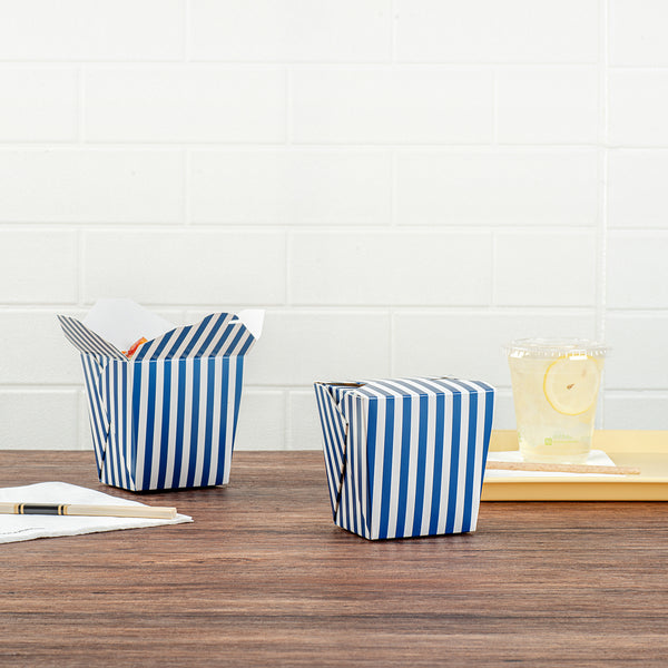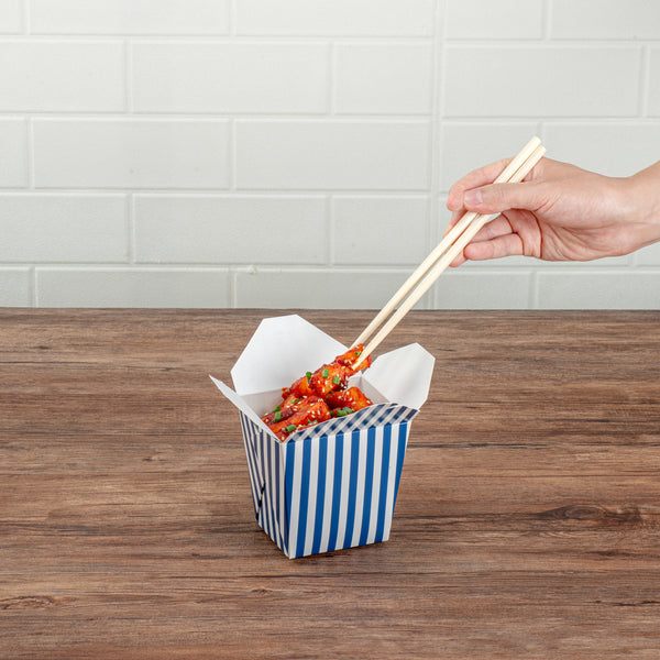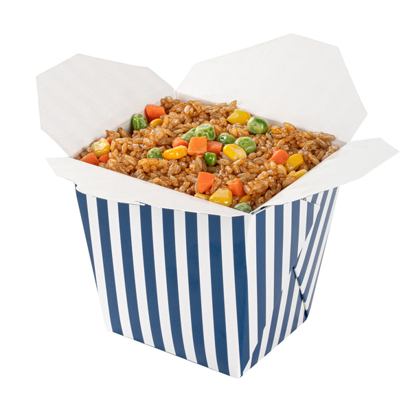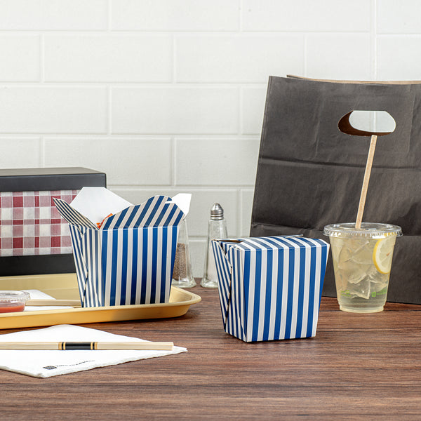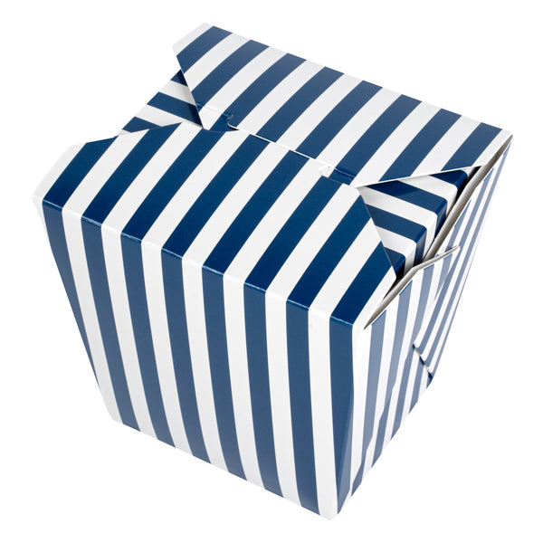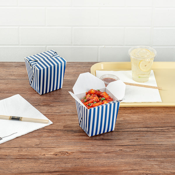 26 OZ BLUE AND WHITE STRIPE PAPER SQUARE NOODLE TAKE OUT CONTAINER