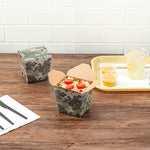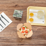 These takeaway boxes are made from thick paper and can easily hold hot and cold foods. Ideal for packing lunches for work!