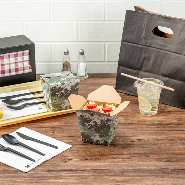 26 OZ CAMOUFLAGE PAPER SQUARE NOODLE TAKE OUT CONTAINER