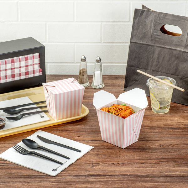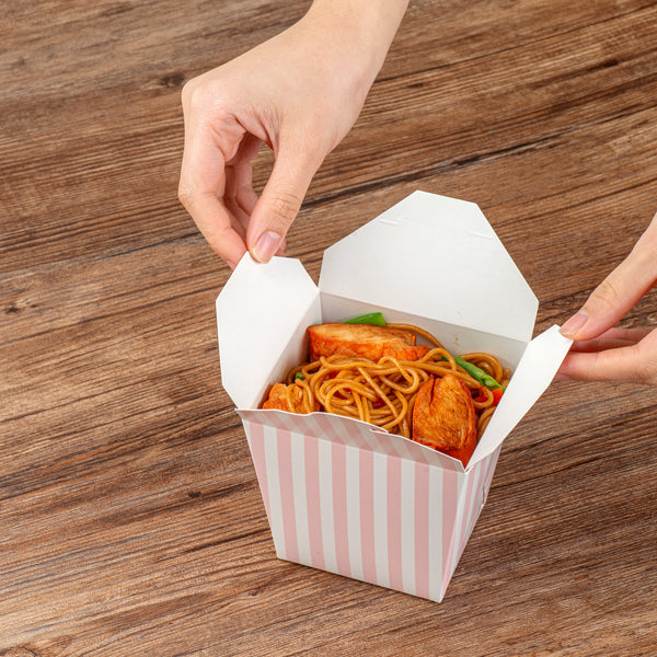 26 OZ PINK AND WHITE STRIPE PAPER SQUARE NOODLE TAKE OUT CONTAINER