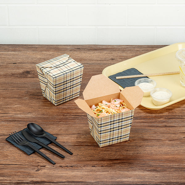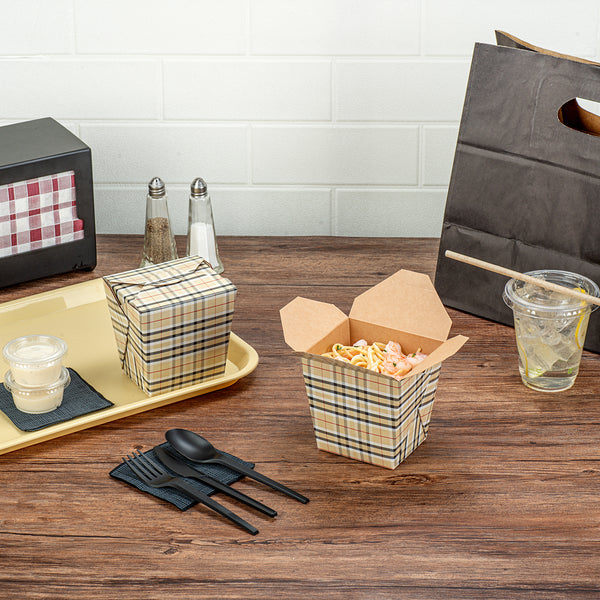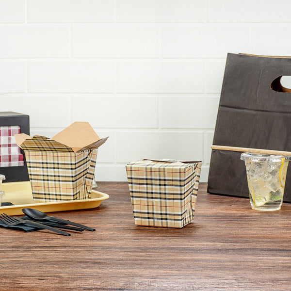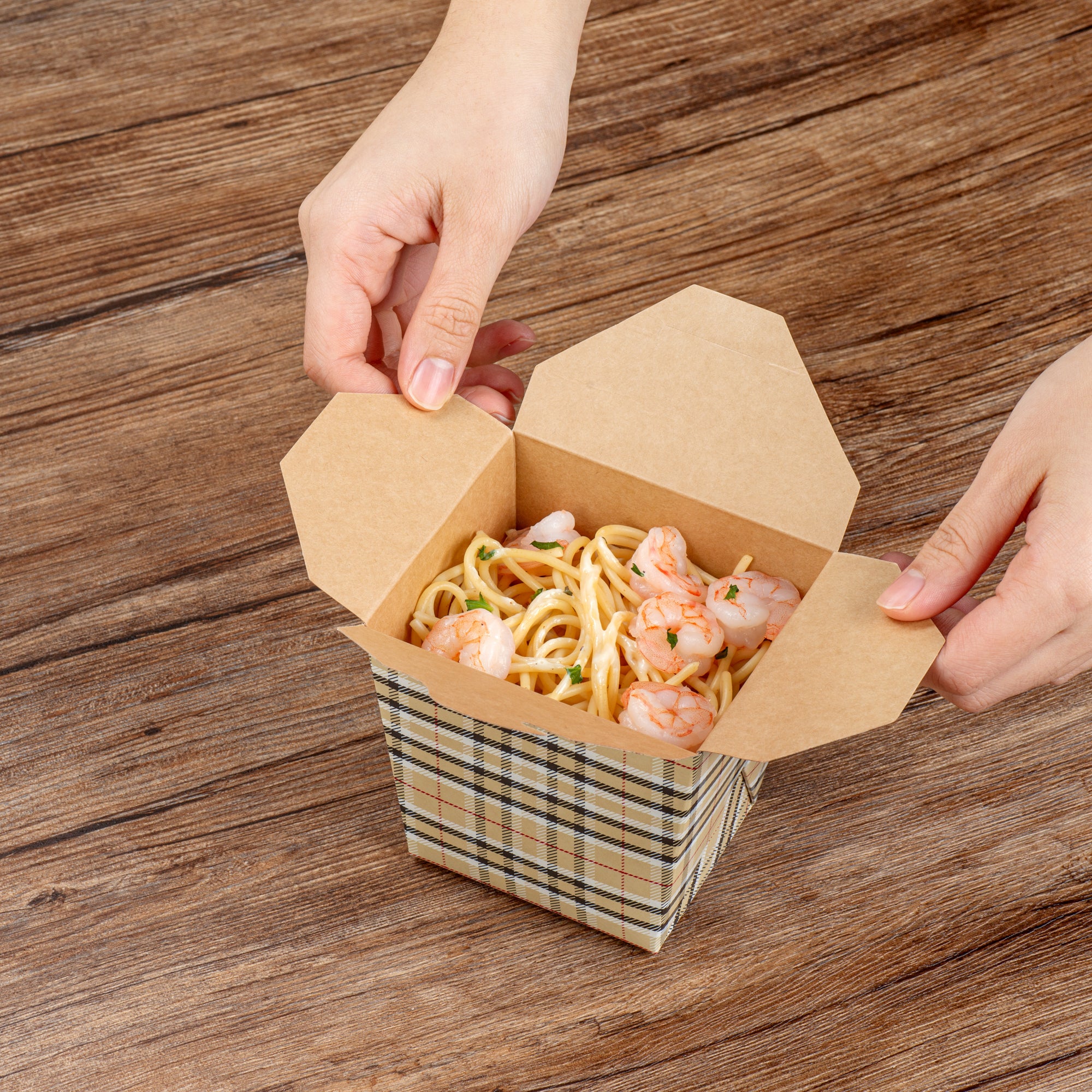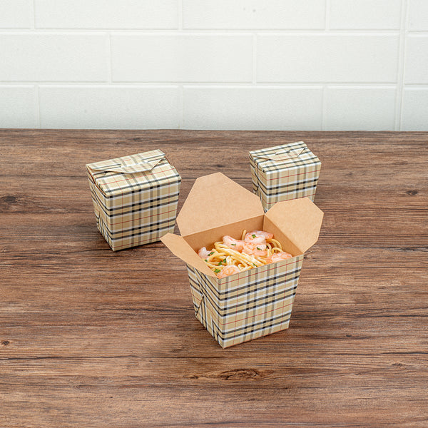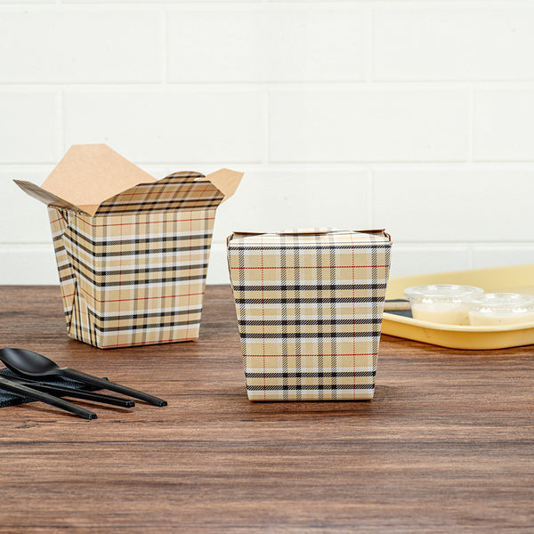 26 OZ PLAID PAPER SQUARE NOODLE TAKE OUT CONTAINER
