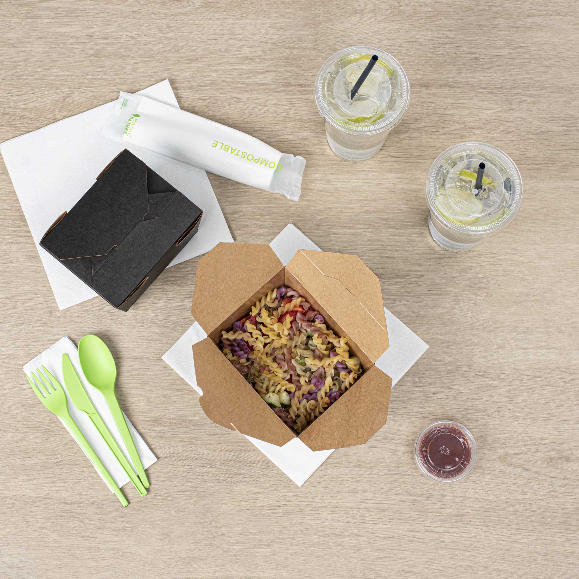 Our food containers are made from recyclable paper to easily dispose of boxes in a nature-friendly way. Don’t worry about washing dirty containers!