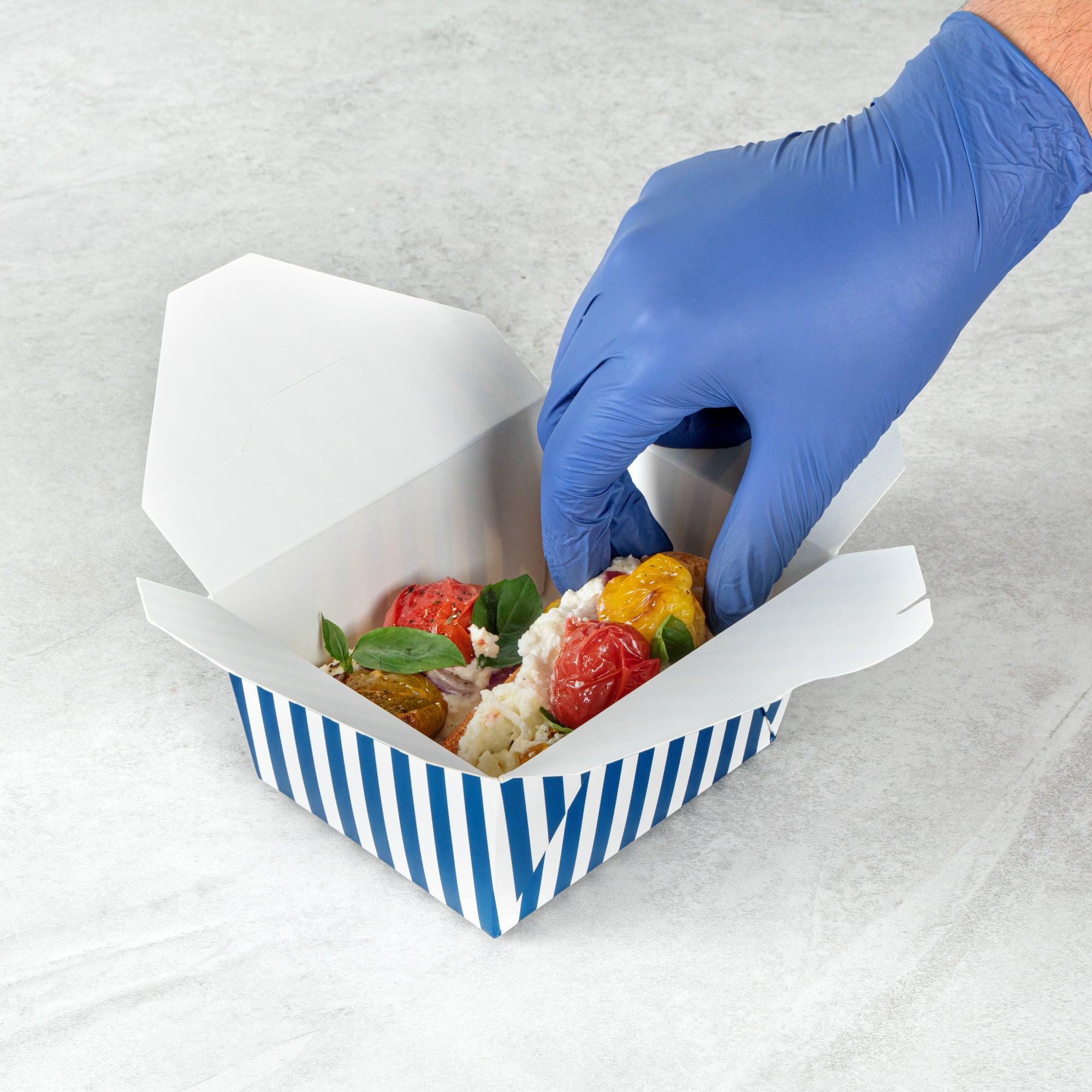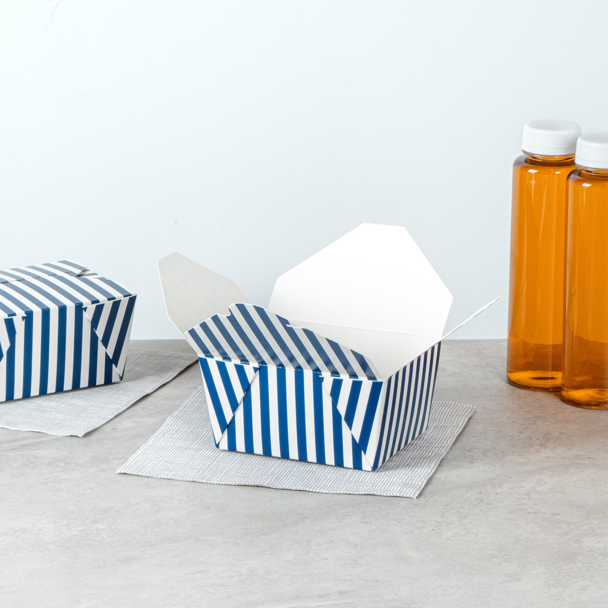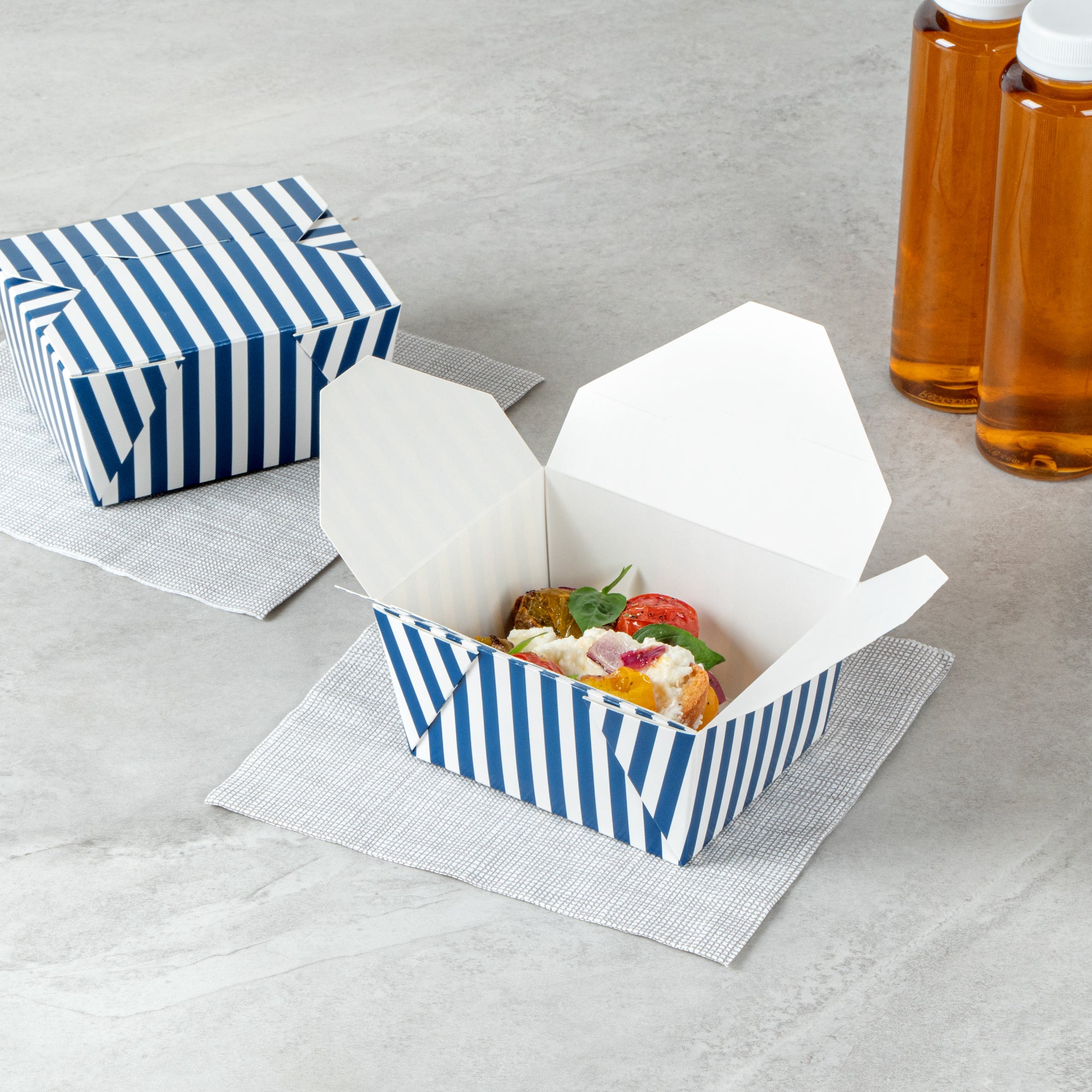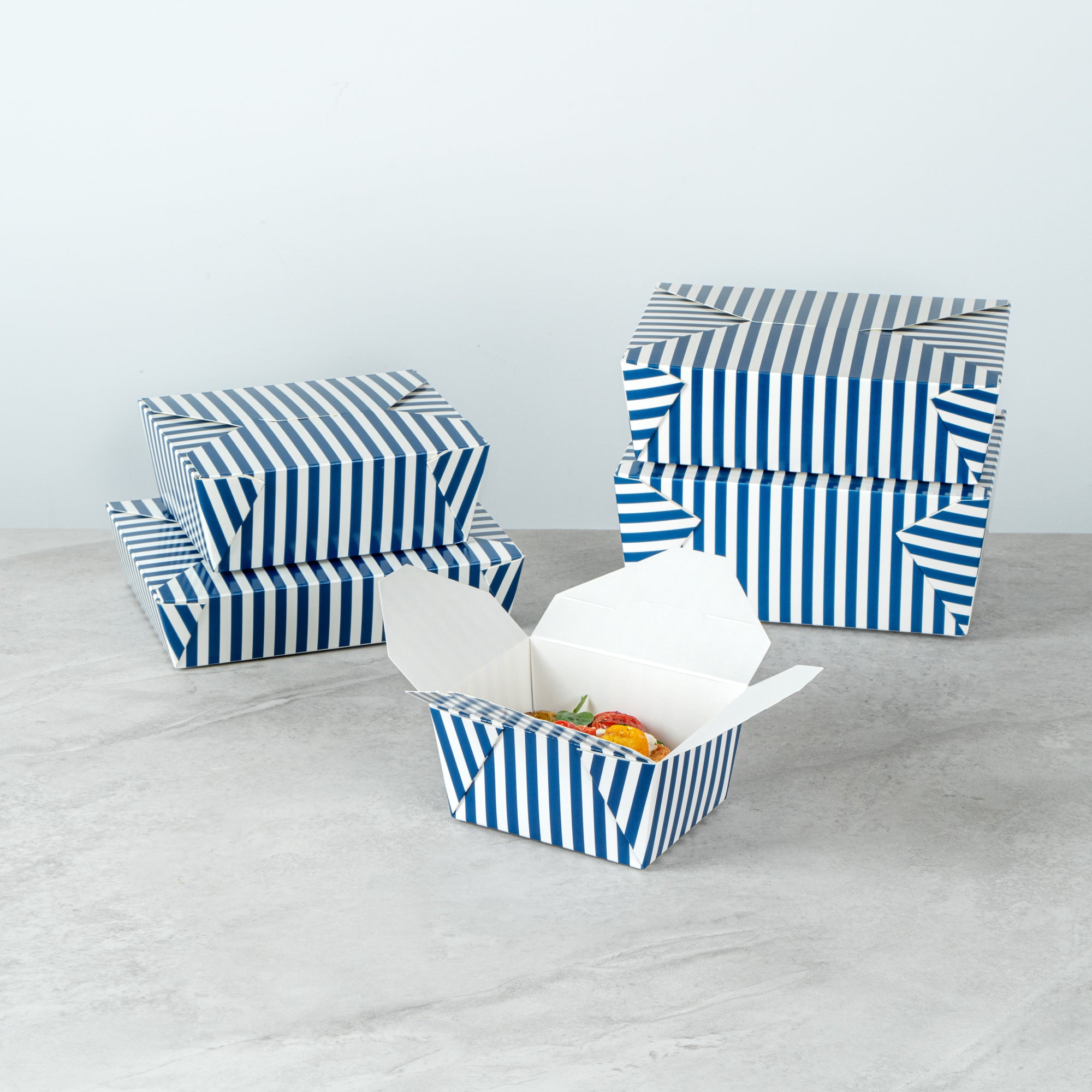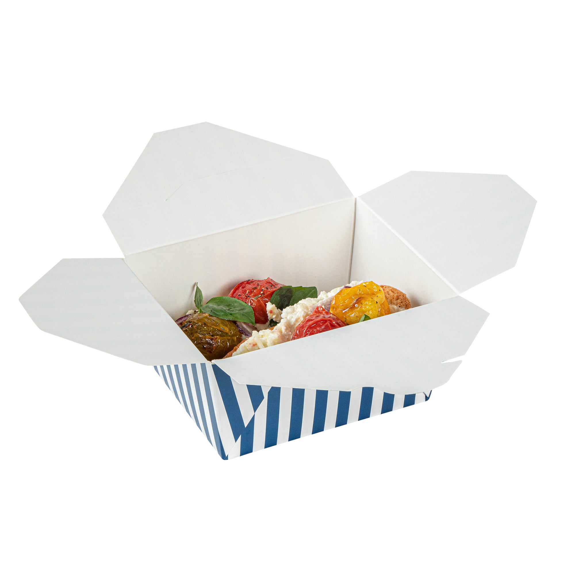 30 OZ BLUE AND WHITE STRIPE PAPER #1 BIO BOX TAKE OUT CONTAINER