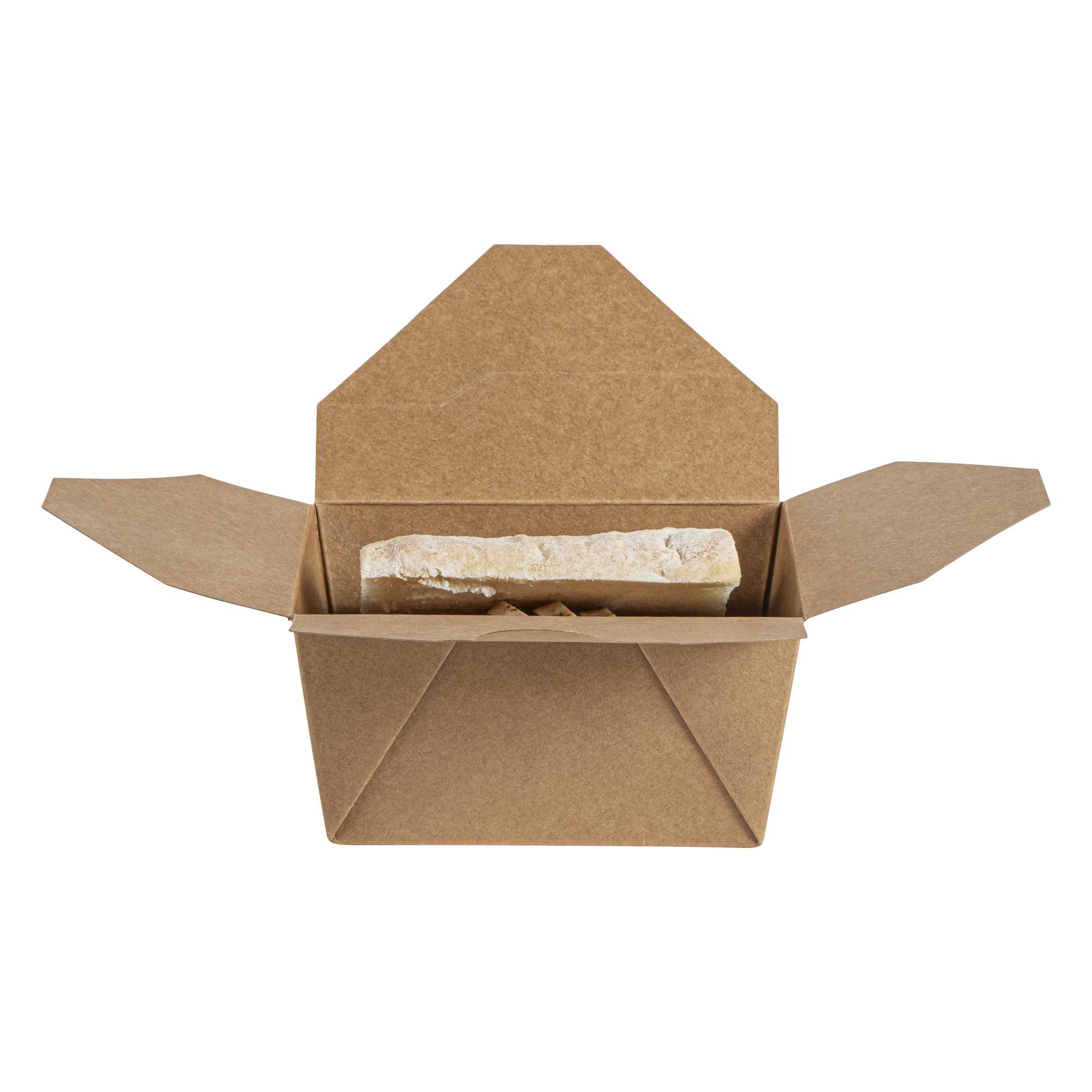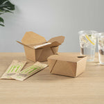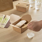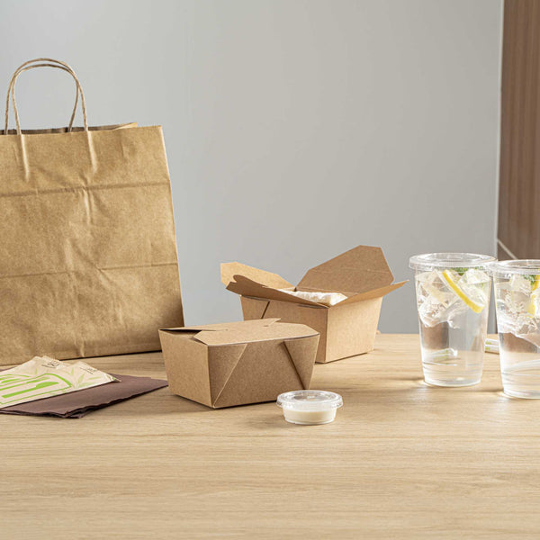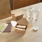 Securely package take out and delivery orders with our Bio Tek 30-ounce Rectangle Kraft Paper Microwavable #1 Bio Box Take Out Containers. With a greaseproof design, these kraft to go boxes expertly stand up to sauces, oils, or greases to avoid messy accidents. These take out containers are microwavable to conveniently heat up prepackaged meals before serving orders. Built with a tab lock closure, these microwavable take out containers securely contain hot or cold meals during transport. With a kraft finish, these disposable carry out containers bring a trendy look to carry out orders and can be written on to keep track of customers' orders. These kraft paper take out containers are stackable for a convenient way to save space in your kitchen or storage area. Measuring 5 inches in length by 4 inches in width by 2.5 inches in height, these restaurant take out containers can contain up to 30 ounces of dumplings, noodles, or fried rice. Sold in a 50 count box.