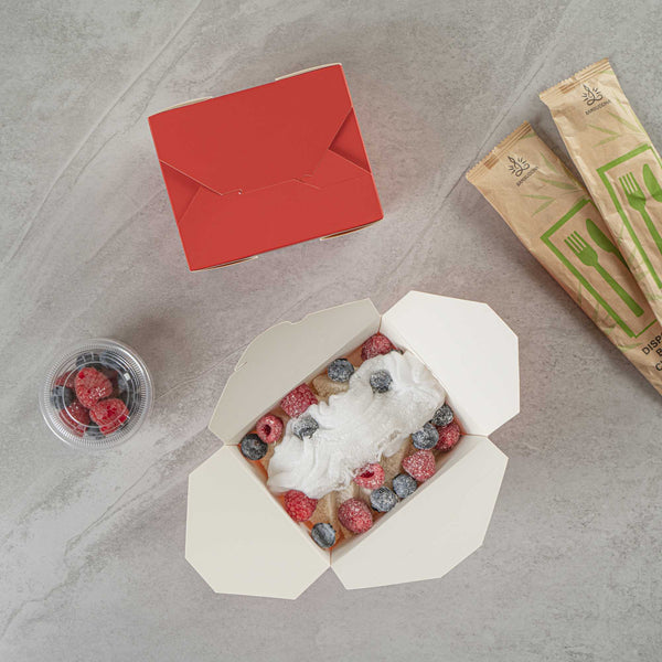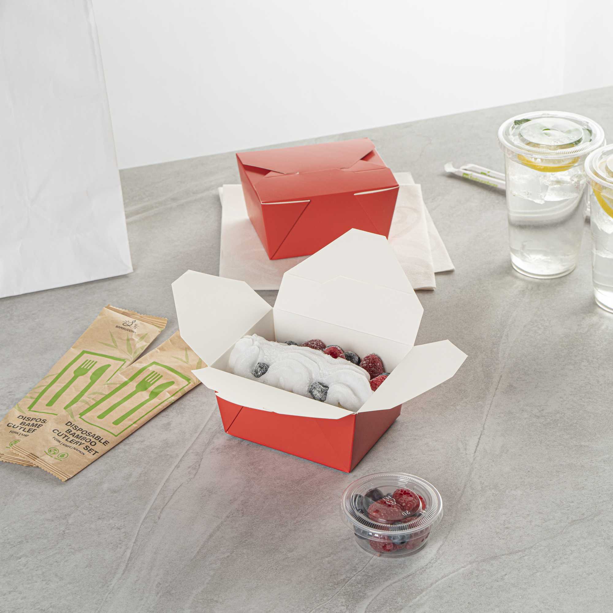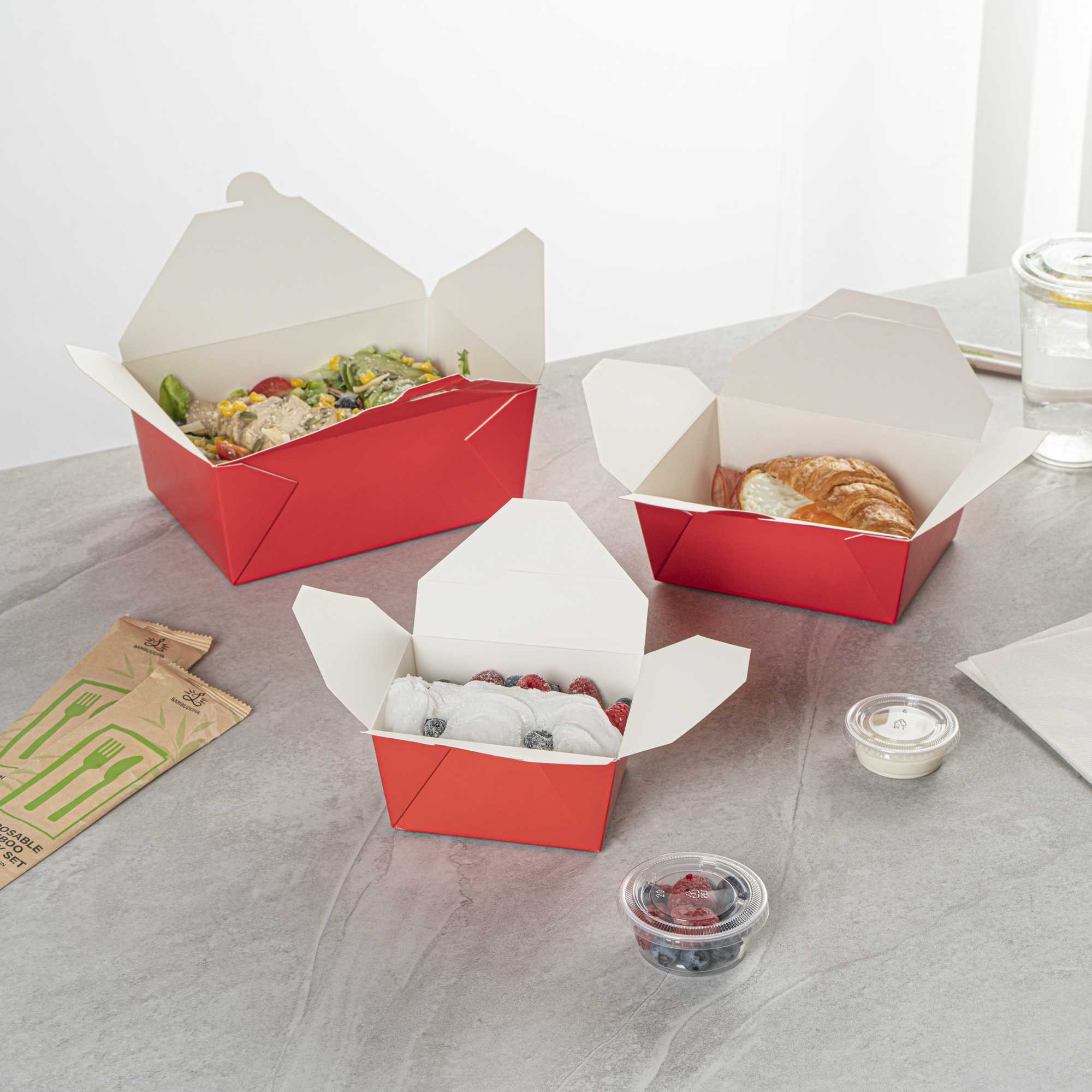 No matter the size of your dish, our disposable food boxes are available in different capacities to accommodate any meal. Choose from our soup, noodle, salad, or rectangle containers to easily pack and take food anywhere.