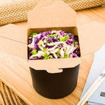 These takeaway boxes are made from thick paper and can easily hold hot and cold foods. Ideal for packing lunches for work!