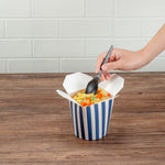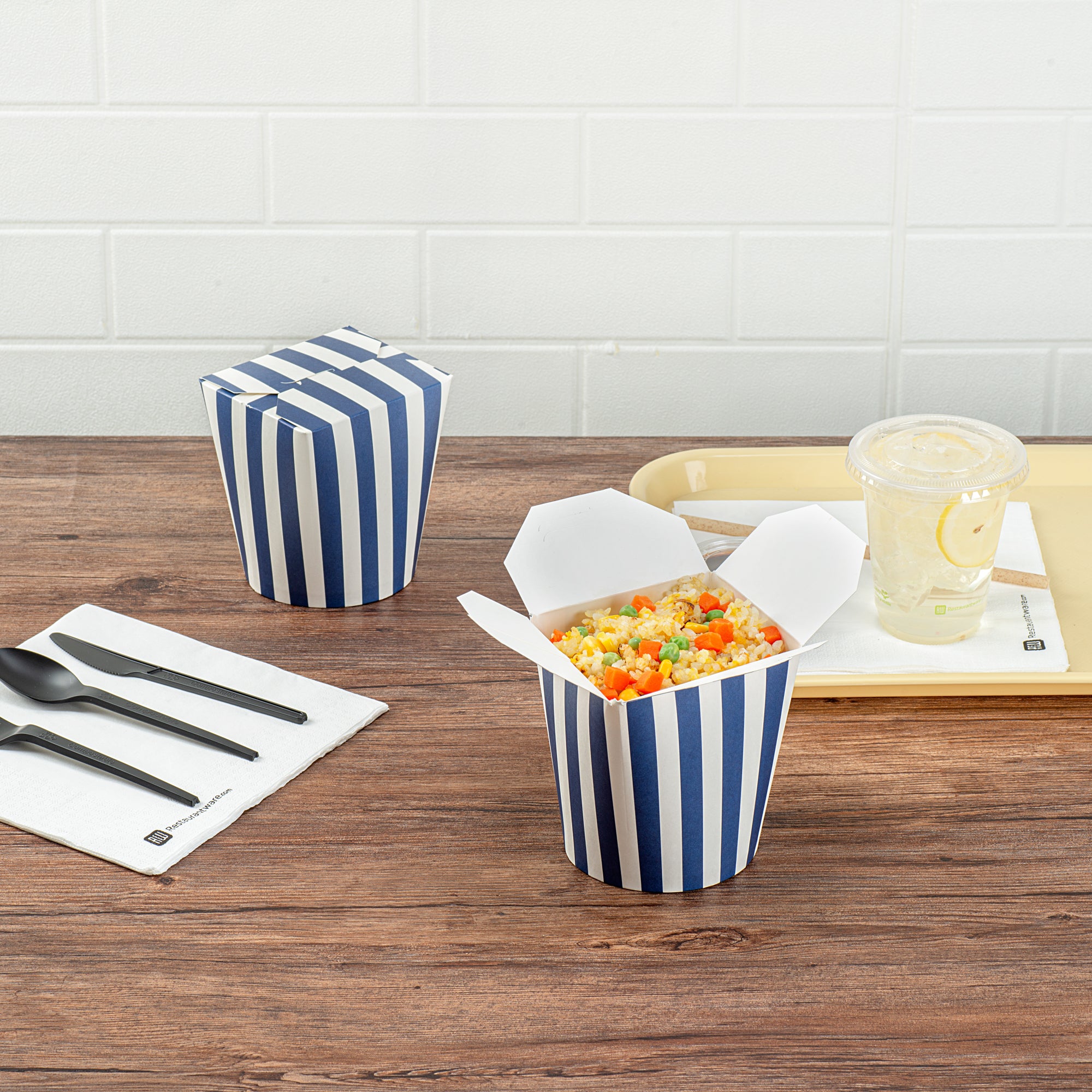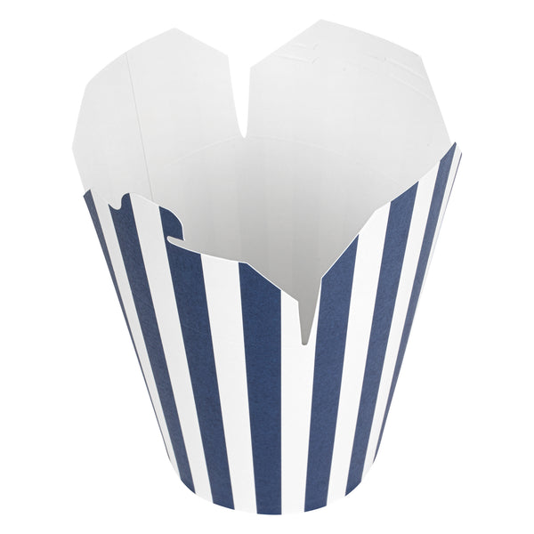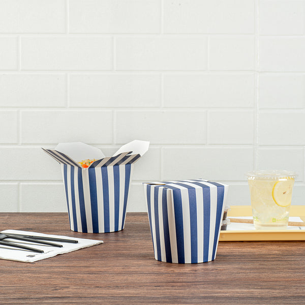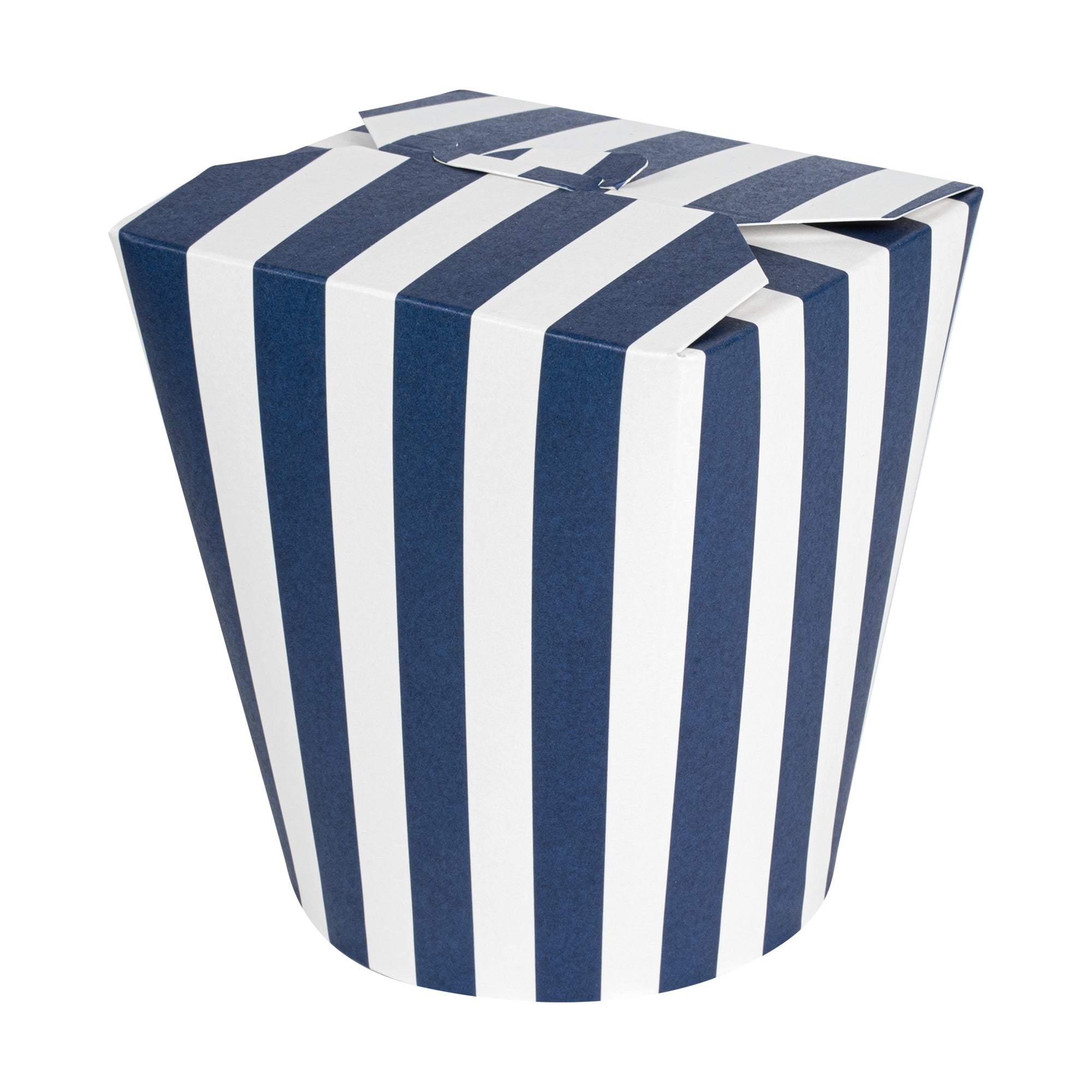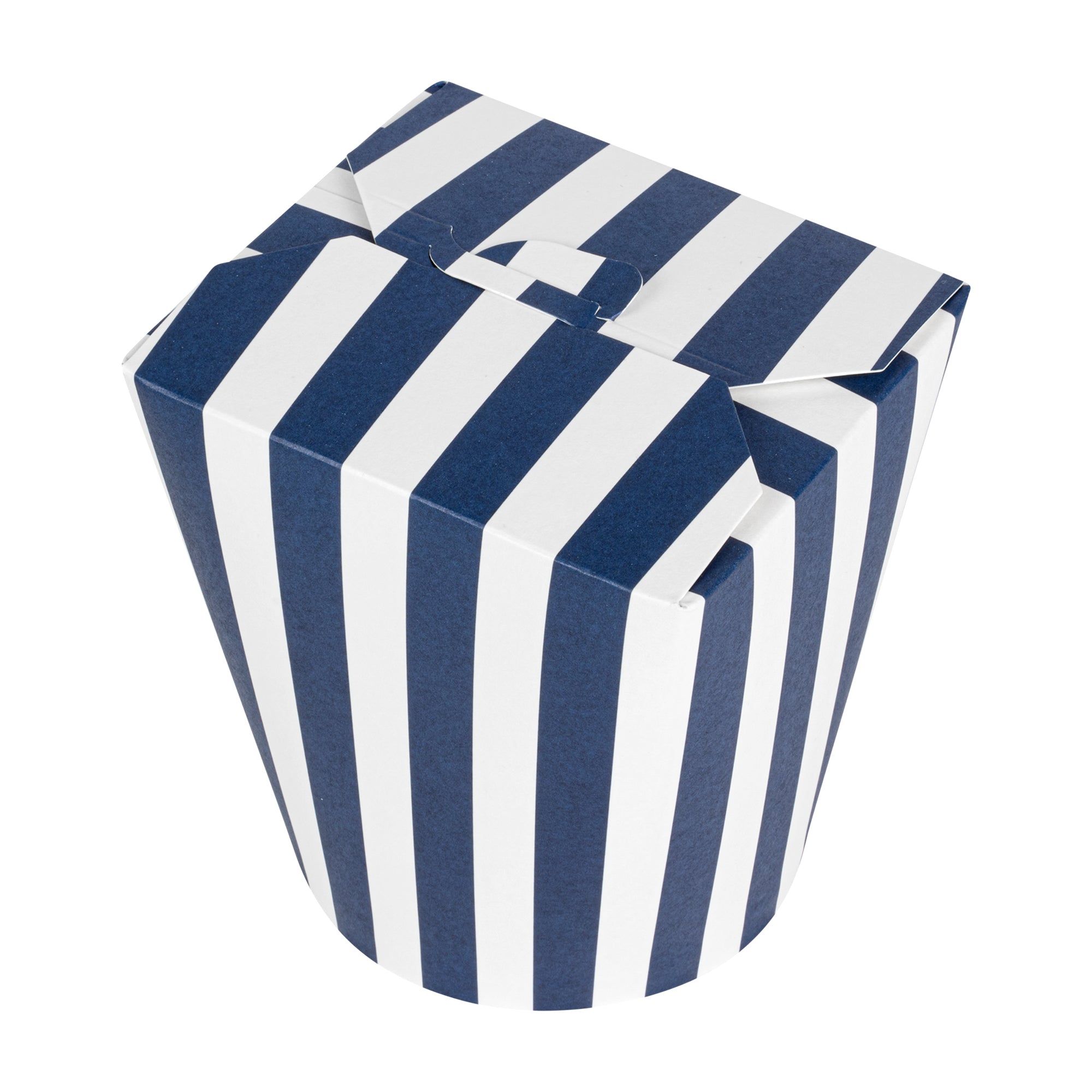 32 OZ ROUND BLUE AND WHITE STRIPE PAPER NOODLE TAKE OUT CONTAINER