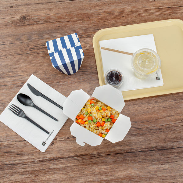 These takeaway boxes are made from thick paper and can easily hold hot and cold foods. Ideal for packing lunches for work!