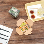 These takeaway boxes are made from thick paper and can easily hold hot and cold foods. Ideal for packing lunches for work!