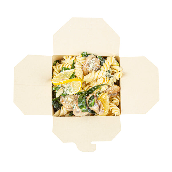 These takeaway boxes are made from thick paper and can easily hold hot and cold foods. Ideal for packing lunches for work!