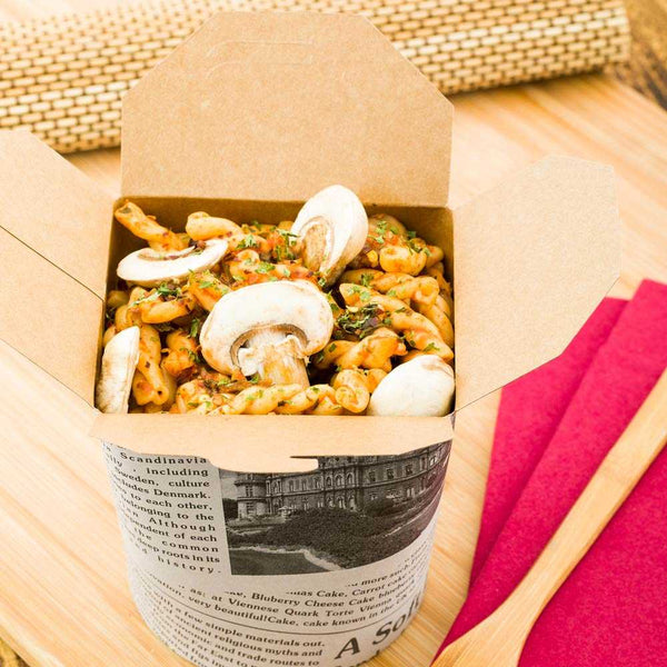 These takeaway boxes are made from thick paper and can easily hold hot and cold foods. Ideal for packing lunches for work!