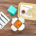 These takeaway boxes are made from thick paper and can easily hold hot and cold foods. Ideal for packing lunches for work!
