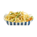 4 OZ BLUE AND WHITE STRIPE PAPER #25 FOOD TRAY / BOAT