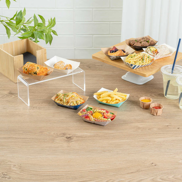 For a simple cleaning process for establishments and guests, these paper food boats are sustainably disposable. Reduce your impact on the environment!