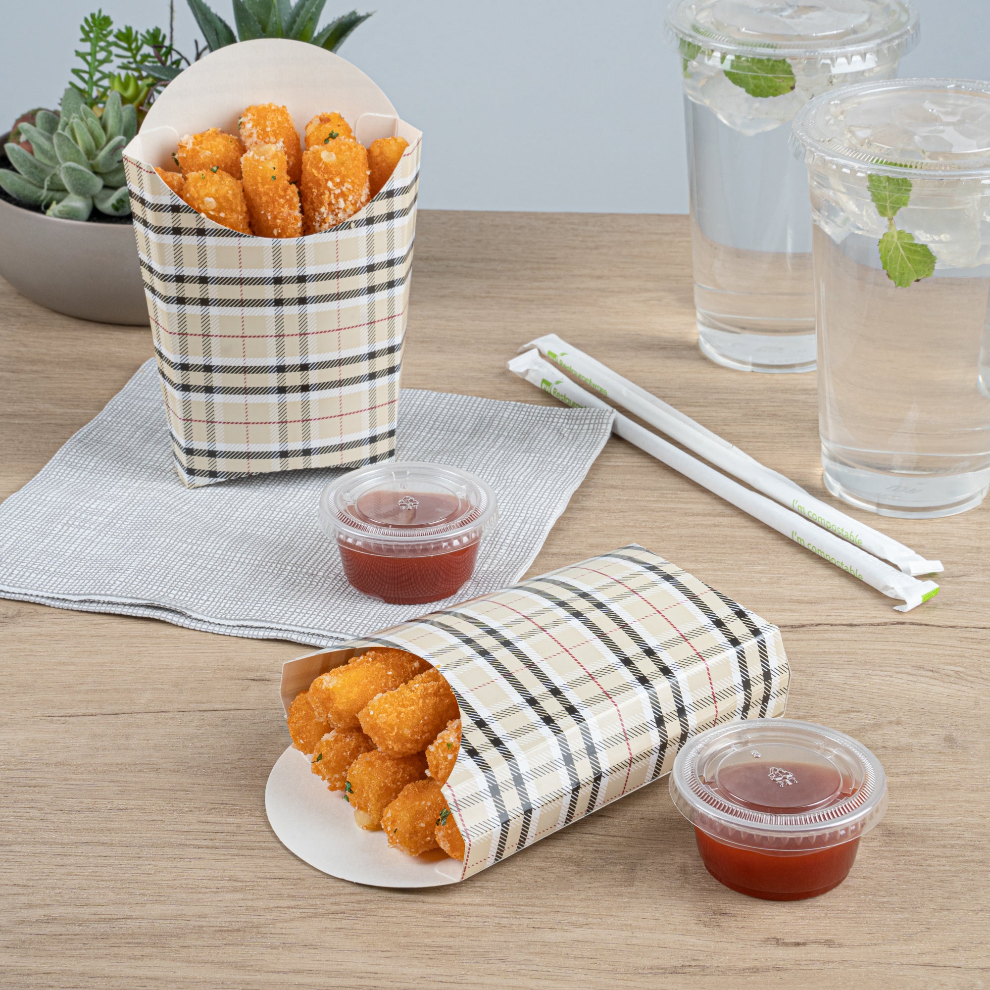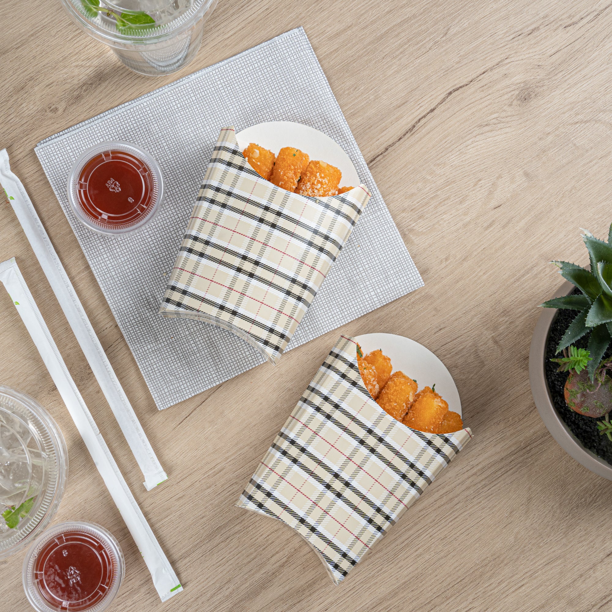 4 OZ PLAID PAPER FRY CUP / SNACK CONTAINER