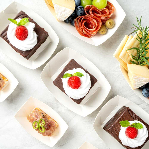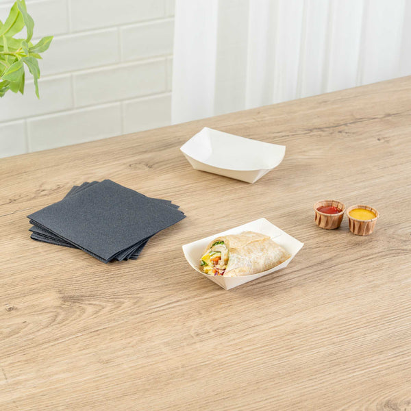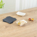 Made from premium paper, these disposable paper food boats are sturdy and reliable to support hefty and saucy dishes. Don't worry about your serving supplies breaking!