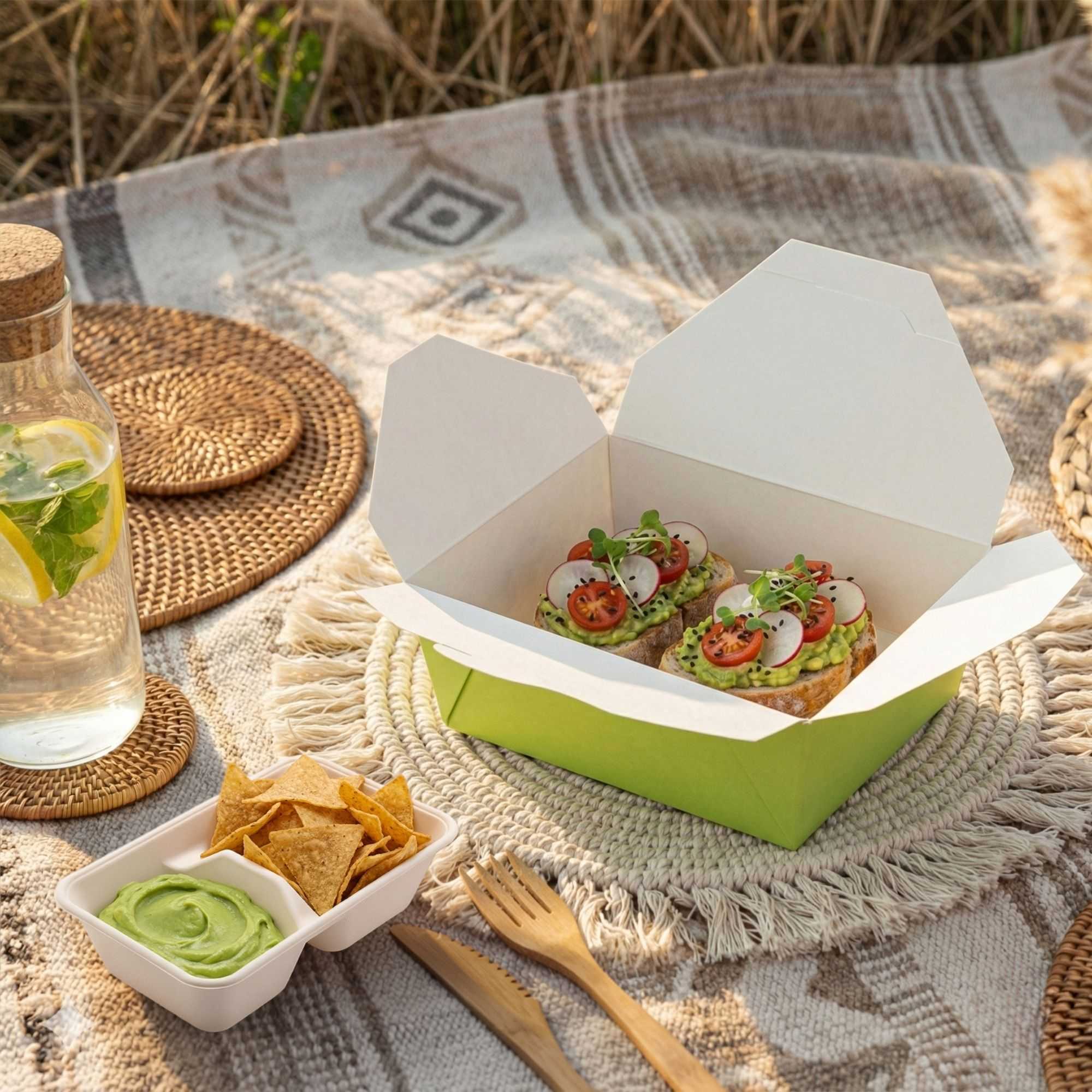 Our food containers are made from recyclable paper to easily dispose of boxes in a nature-friendly way. Don’t worry about washing dirty containers!