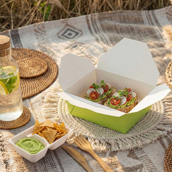 No matter the size of your dish, our disposable food boxes are available in different capacities to accommodate any meal. Choose from our soup, noodle, salad, or rectangle containers to easily pack and take food anywhere.