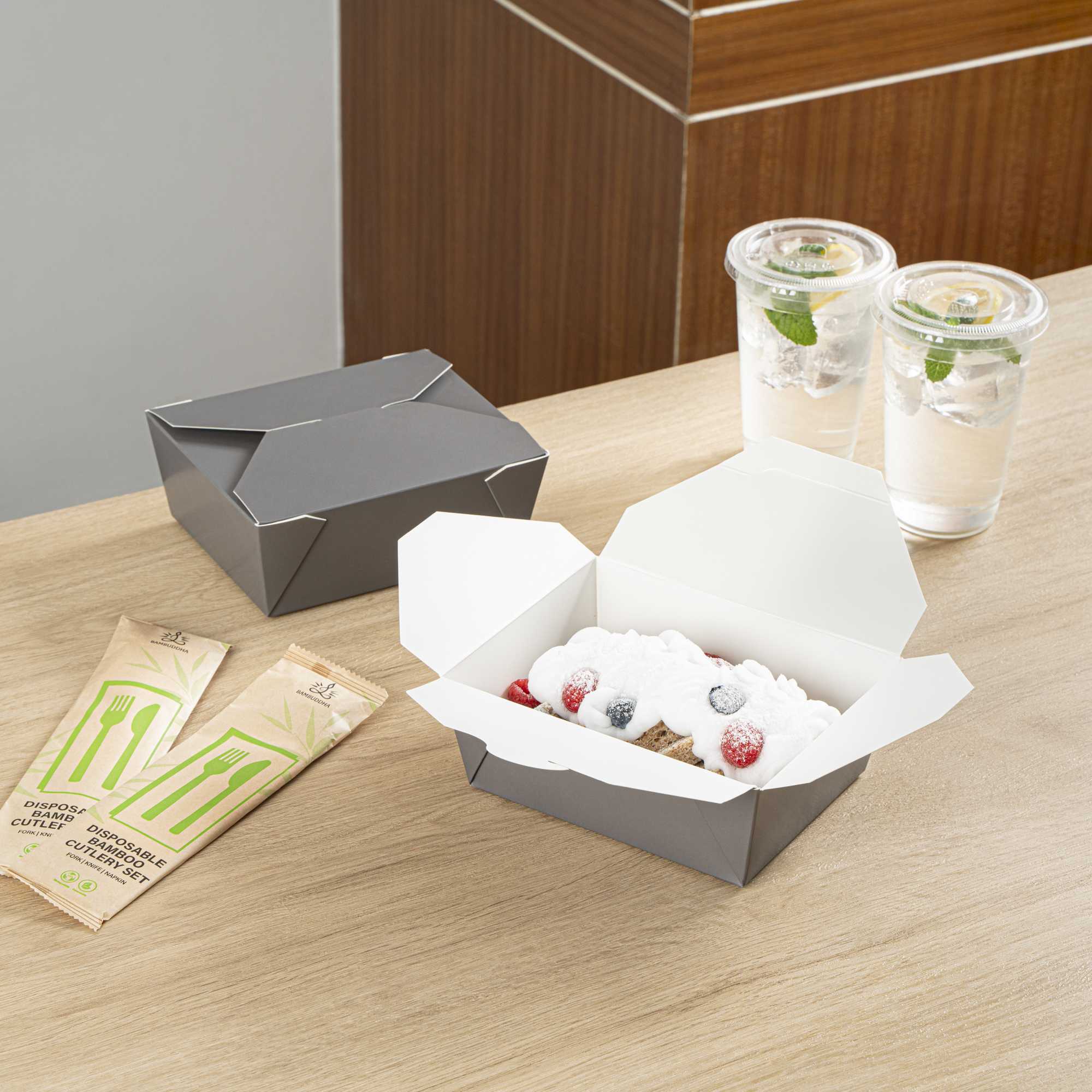 No matter the size of your dish, our disposable food boxes are available in different capacities to accommodate any meal. Choose from our soup, noodle, salad, or rectangle containers to easily pack and take food anywhere.