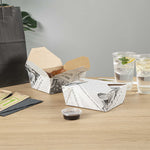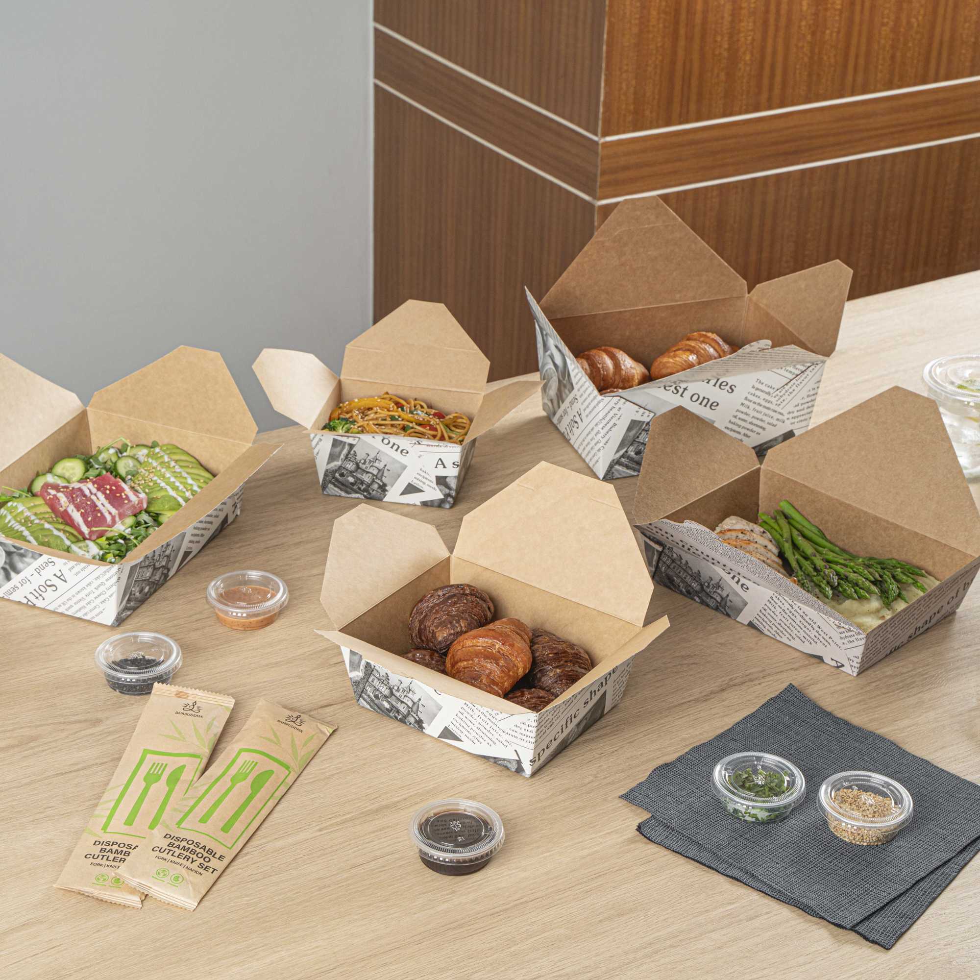 Our food containers are made from recyclable paper to easily dispose of boxes in a nature-friendly way. Don’t worry about washing dirty containers!