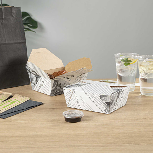 - Tab-lock closure ensures mess-free takeout and delivery