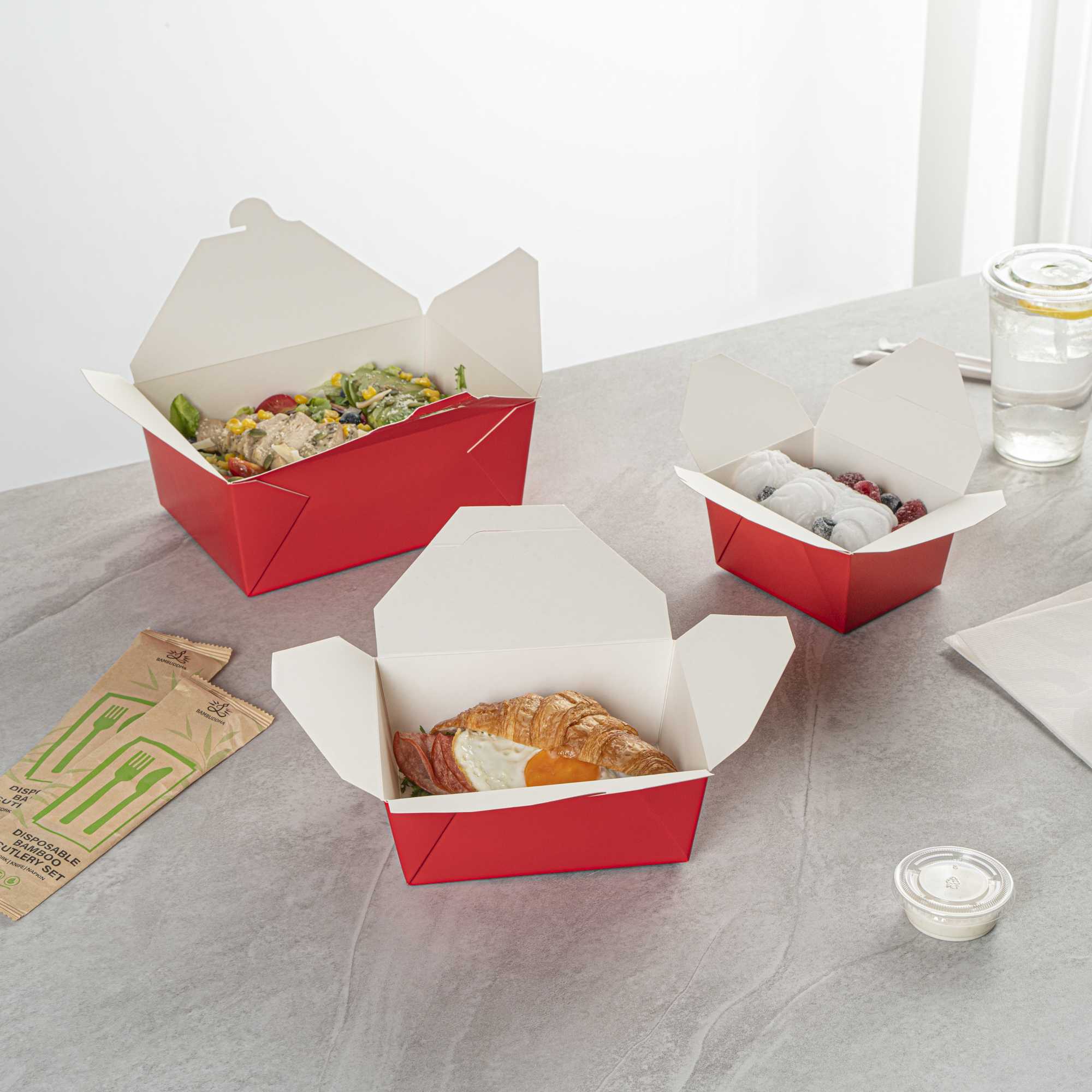 No matter the size of your dish, our disposable food boxes are available in different capacities to accommodate any meal. Choose from our soup, noodle, salad, or rectangle containers to easily pack and take food anywhere.