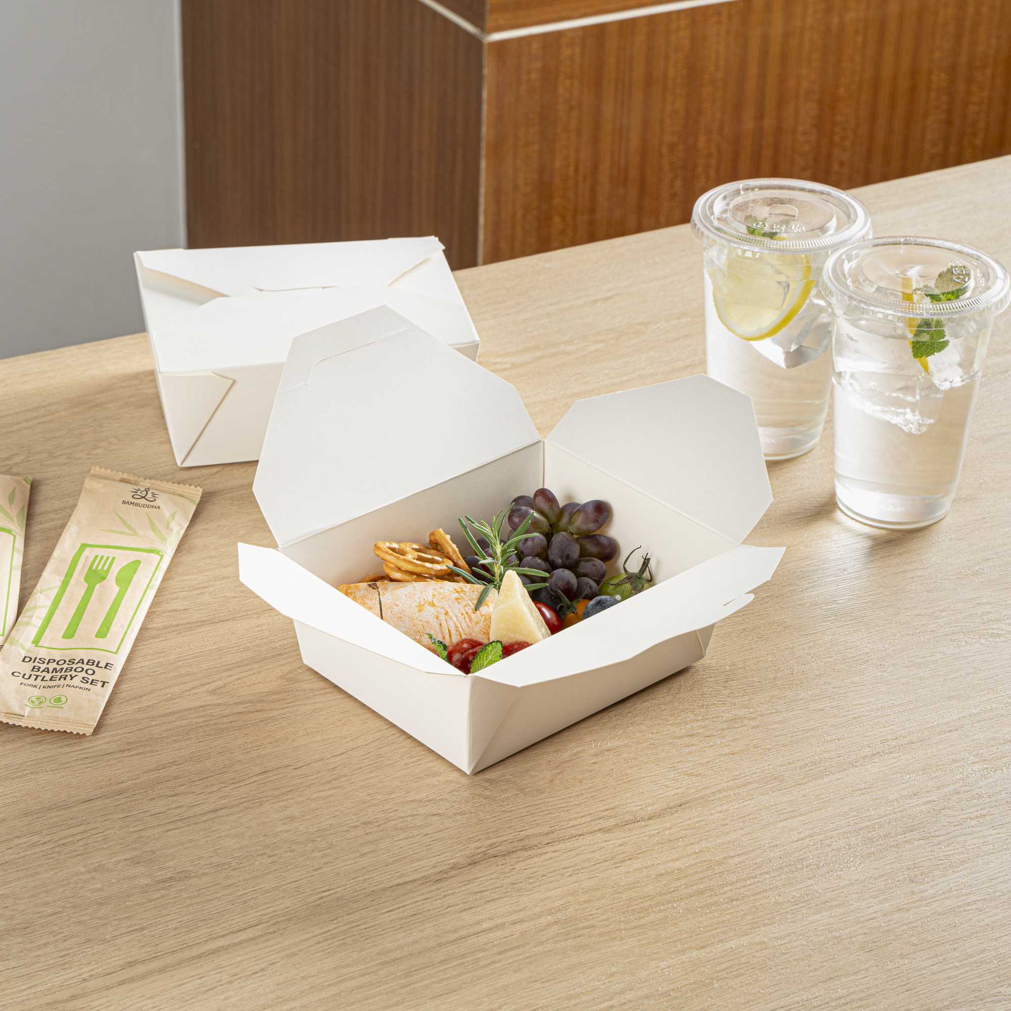 45 OZ RECTANGLE WHITE PAPER #8 BIO BOX TAKE OUT CONTAINER