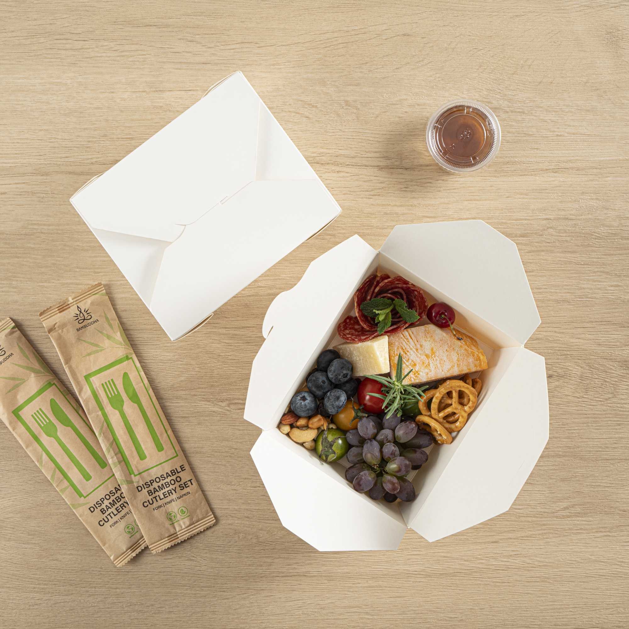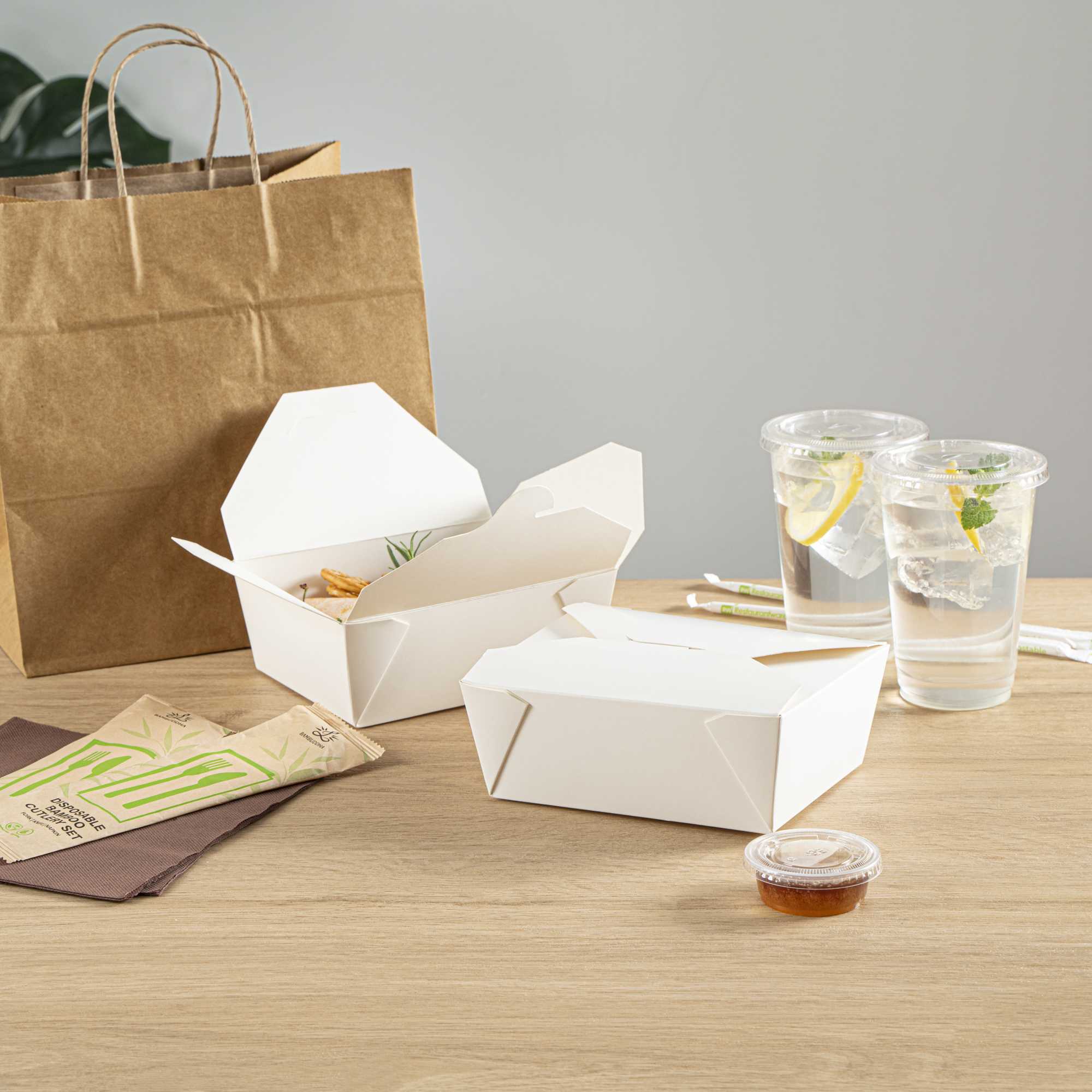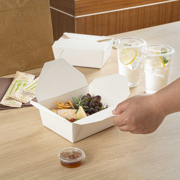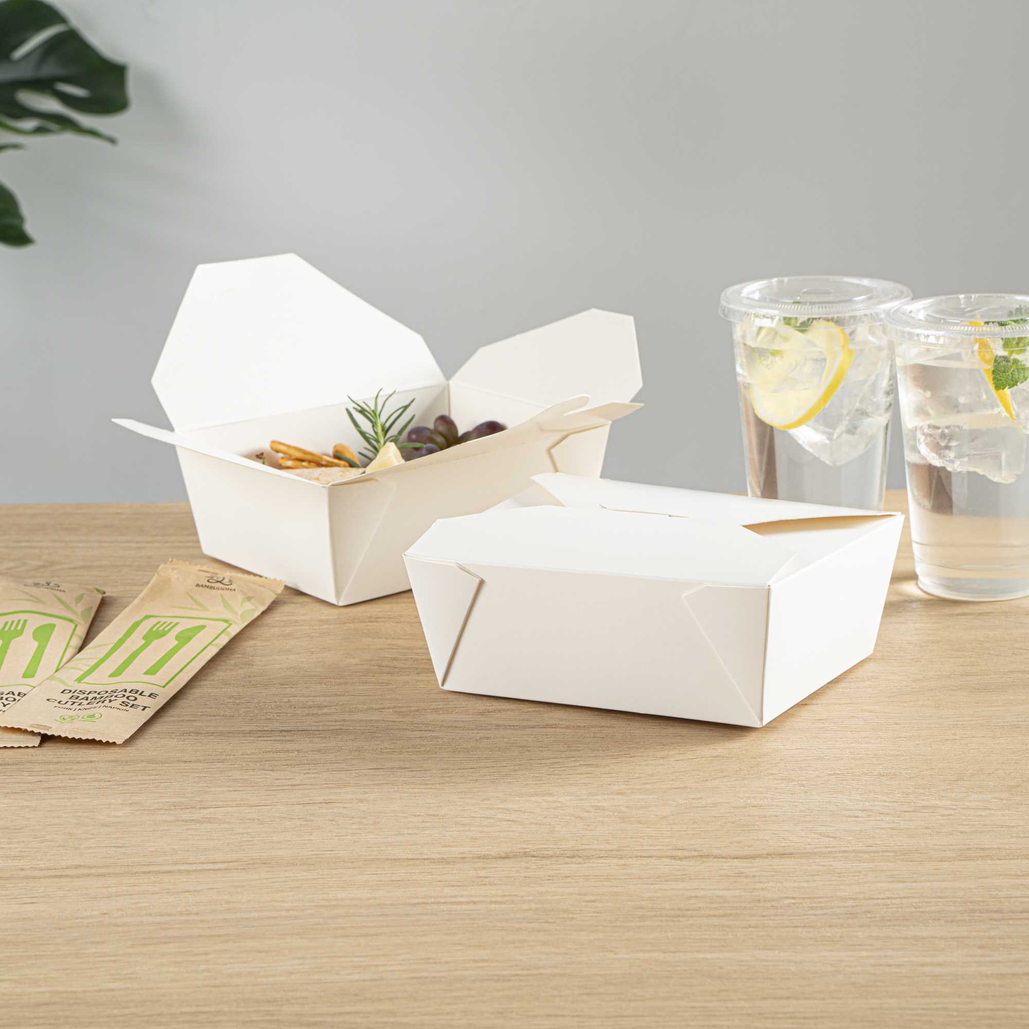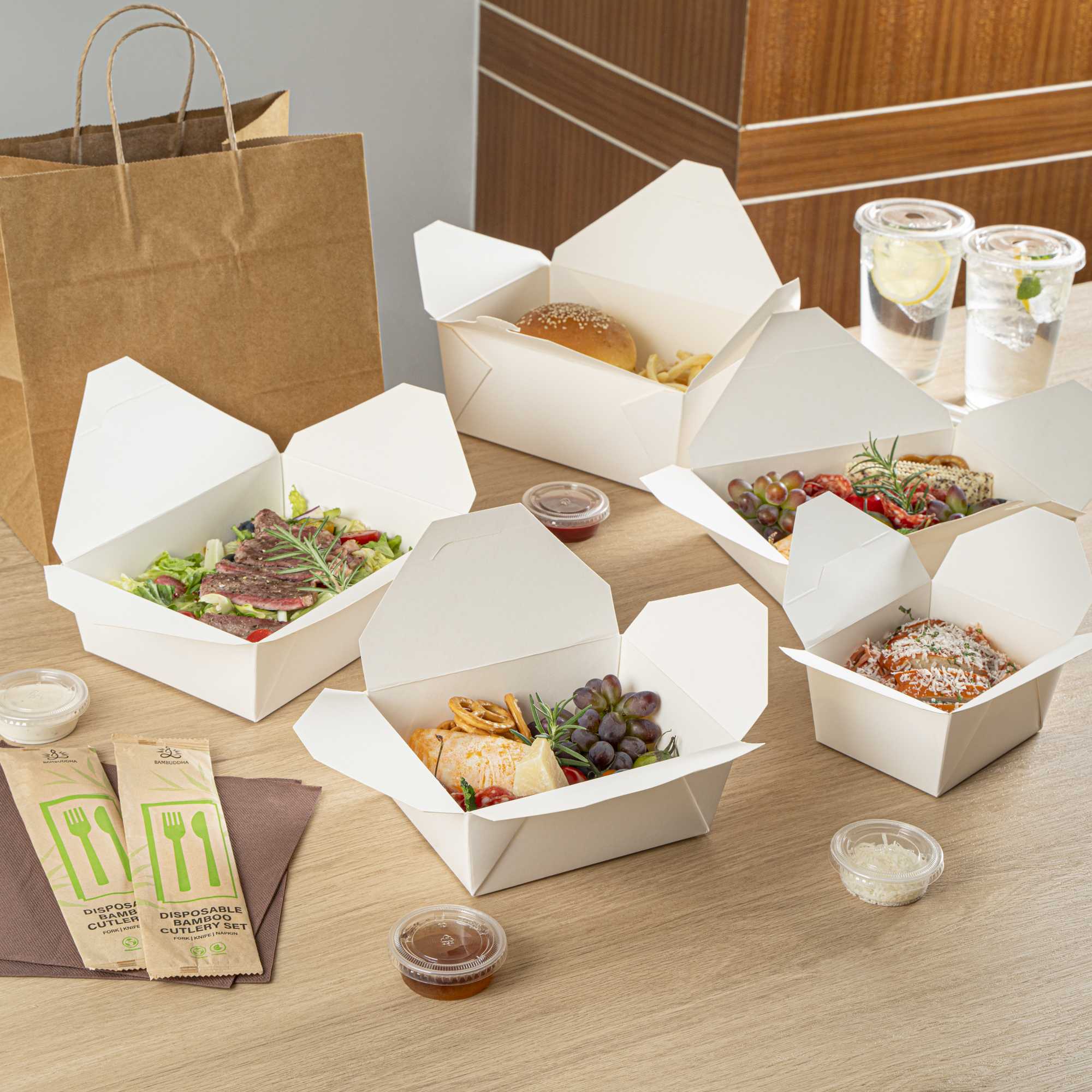 No matter the size of your dish, our disposable food boxes are available in different capacities to accommodate any meal. Choose from our soup, noodle, salad, or rectangle containers to easily pack and take food anywhere.
