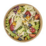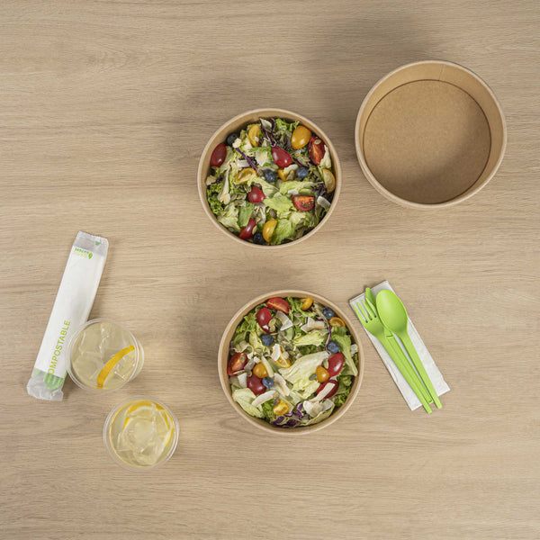 Enhance your foodservice offerings with our Bio Tek 51-ounce Round Kraft Paper Take Out Containers. Pair these takeaway containers with their coordinating plastic lids (SKU: RWA1438C-50) and form a tight seal to protect your culinary creations in transit. The grease-resistant design of these food containers prevents sauces from soaking through and ensures a neat food presentation. To easily reheat your meals, these carry out containers have a PP lining, making them microwave-safe and can withstand temperatures up to 248F. Made from thick kraft paper, these take out food containers are suitable for holding various hot and cold food items. The rustic kraft finish of these to go containers creates a charming look for your take out orders. Designed with sustainability in mind, these disposable food containers are recyclable and offer an environmentally-friendly food packaging solution. These take out boxes are disposable and can be disposed of, offering an easy cleaning experience. Measuring 7.25 inches in diameter by 2.5 inches in height, these take out containers can hold up to 51 ounces. Sold in a 50 count box. Lids are available and sold separately.