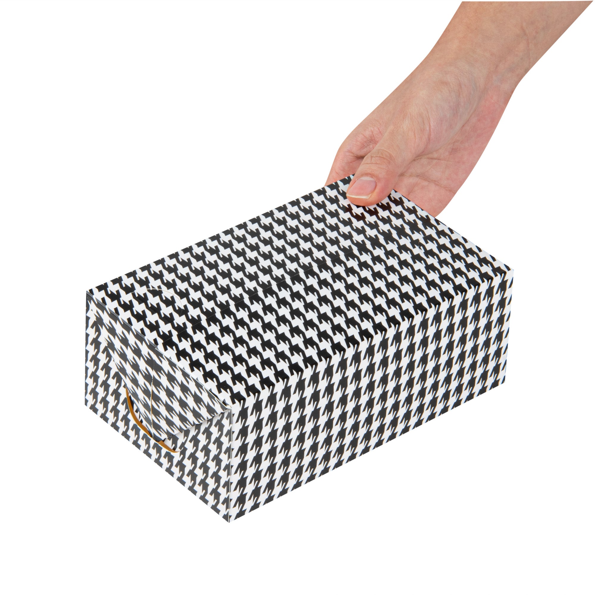 47 OZ BLACK HOUNDSTOOTH PAPER LUNCH / CHICKEN BOX - WITH FAST TOP