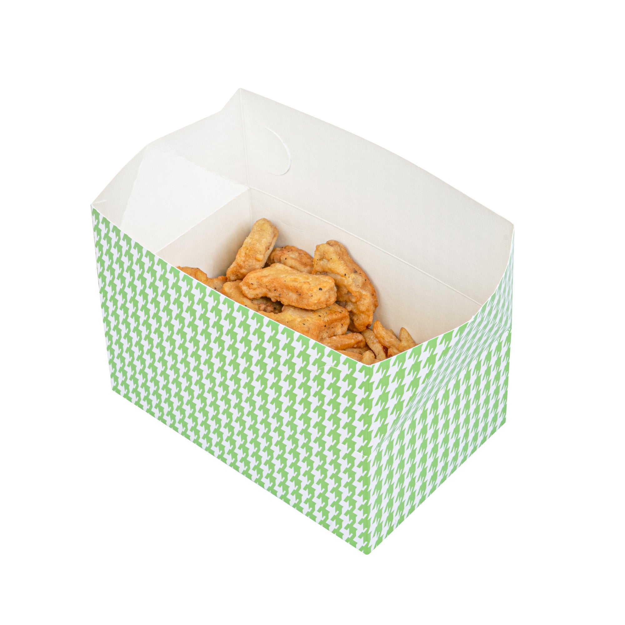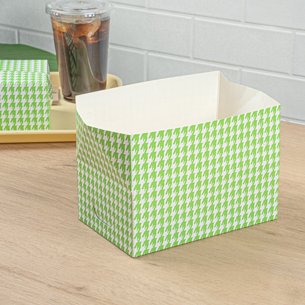 47 OZ GREEN HOUNDSTOOTH PAPER LUNCH / CHICKEN BOX - WITH FAST TOP