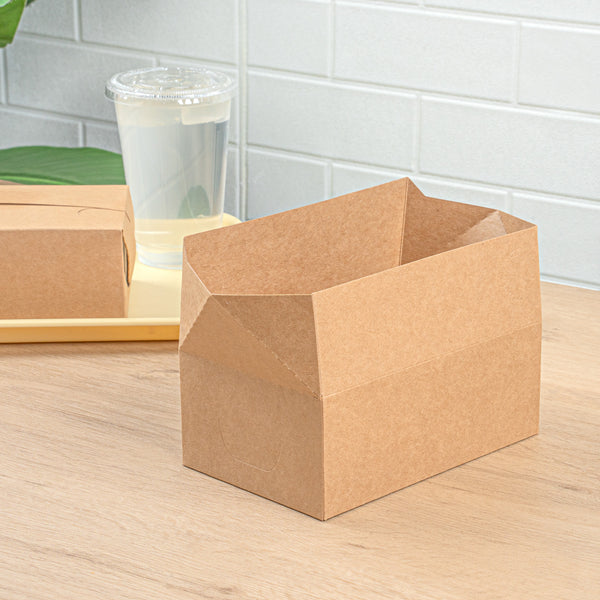 Enhance your takeout service with eco-friendly and reliable packaging. The Bio Tek Spill-Resistant Kraft Paper Takeout Box features a fast top closure, ensuring a secure seal for spill-resistant food transportation. With its greaseproof lining, this kraft paper takeout box maintains the freshness of oily foods, preventing oil leakages and preserving food quality. Made from recyclable paper, it offers an eco-friendly packaging solution, perfect for businesses committed to sustainability. Its generous 47 ounce capacity accommodates large portions, making it ideal for varied meal sizes, from hearty lunches to chicken dishes. Measuring 7 inches in length, this disposable meal box is crafted from sturdy kraft paper, providing robust and dependable packaging for foodservice professionals. Elevate your operational efficiency and sustainability efforts with this versatile and practical spill-resistant food box. Each order includes 100 Bio Tek Spill-Resistant Kraft Paper Takeout Boxes.