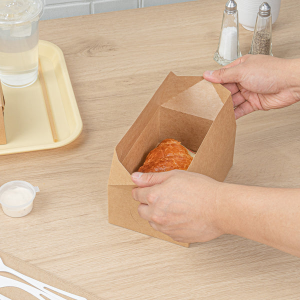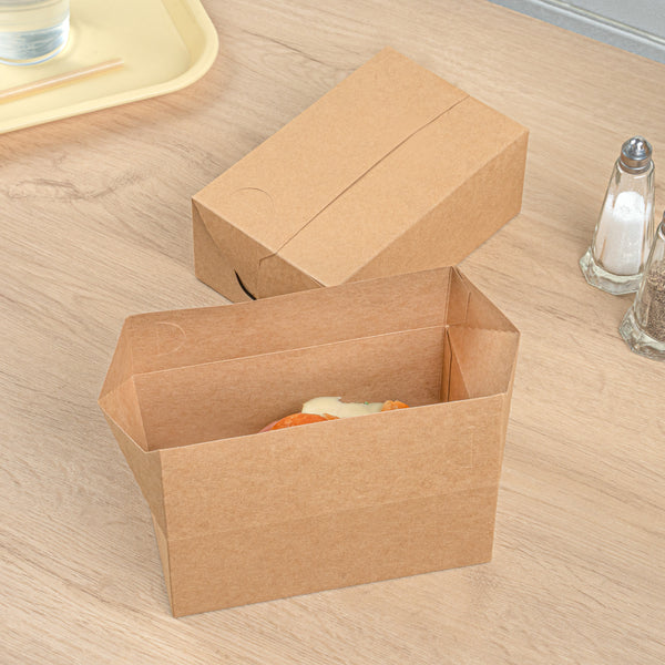 Enhance your takeout service with eco-friendly and reliable packaging. The Bio Tek Spill-Resistant Kraft Paper Takeout Box features a fast top closure, ensuring a secure seal for spill-resistant food transportation. With its greaseproof lining, this kraft paper takeout box maintains the freshness of oily foods, preventing oil leakages and preserving food quality. Made from recyclable paper, it offers an eco-friendly packaging solution, perfect for businesses committed to sustainability. Its generous 47 ounce capacity accommodates large portions, making it ideal for varied meal sizes, from hearty lunches to chicken dishes. Measuring 7 inches in length, this disposable meal box is crafted from sturdy kraft paper, providing robust and dependable packaging for foodservice professionals. Elevate your operational efficiency and sustainability efforts with this versatile and practical spill-resistant food box. Each order includes 400 Bio Tek Spill-Resistant Kraft Paper Takeout Boxes.