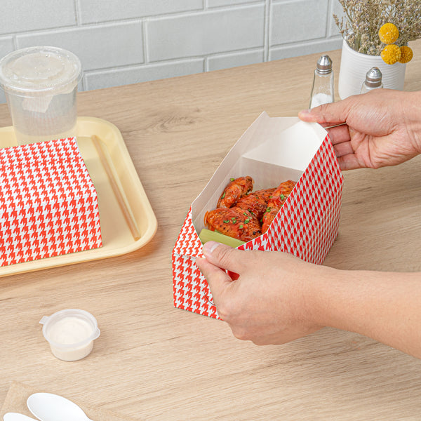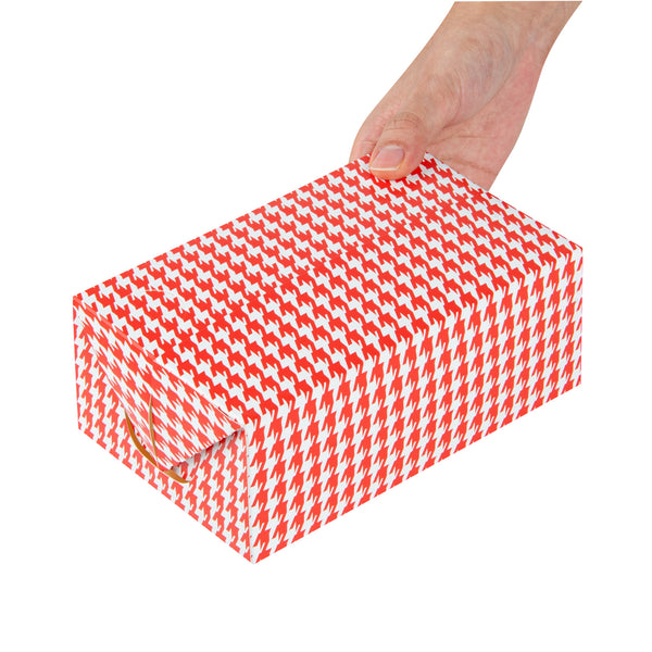 47 OZ RED HOUNDSTOOTH PAPER LUNCH / CHICKEN BOX - WITH FAST TOP