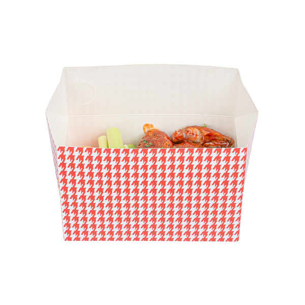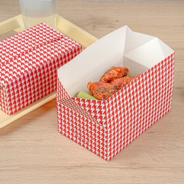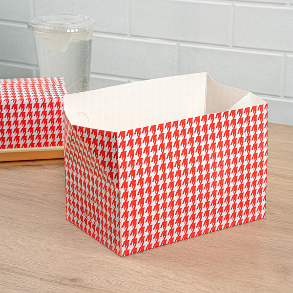 47 OZ RED HOUNDSTOOTH PAPER LUNCH / CHICKEN BOX - WITH FAST TOP