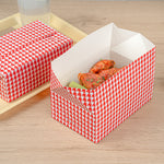 Ensure spill-free transport with our Bio Tek Spill-Resistant Paper Takeout Box. This paper takeout box boasts a fast top closure, guaranteeing a secure seal that enhances operational efficiency during peak service hours. The spill-resistant takeout container's greaseproof lining prevents oil leakages, ensuring your delicious meals arrive fresh and intact. With a robust rectangular food container design measuring 7 inches by 4.5 inches by 2.75 inches, it's perfect for packing generous portions, making it suitable for both hot and cold dishes. Constructed from eco-friendly, recyclable paper, this container supports sustainability by minimizing waste. Whether you're serving fried chicken or catering an event, this takeout solution combines functionality and style, impressing customers with its attractive red houndstooth pattern. Experience the dual benefits of practicality and presentation in your foodservice operations. Each order includes 400 Bio Tek Spill-Resistant Paper Takeout Boxes.