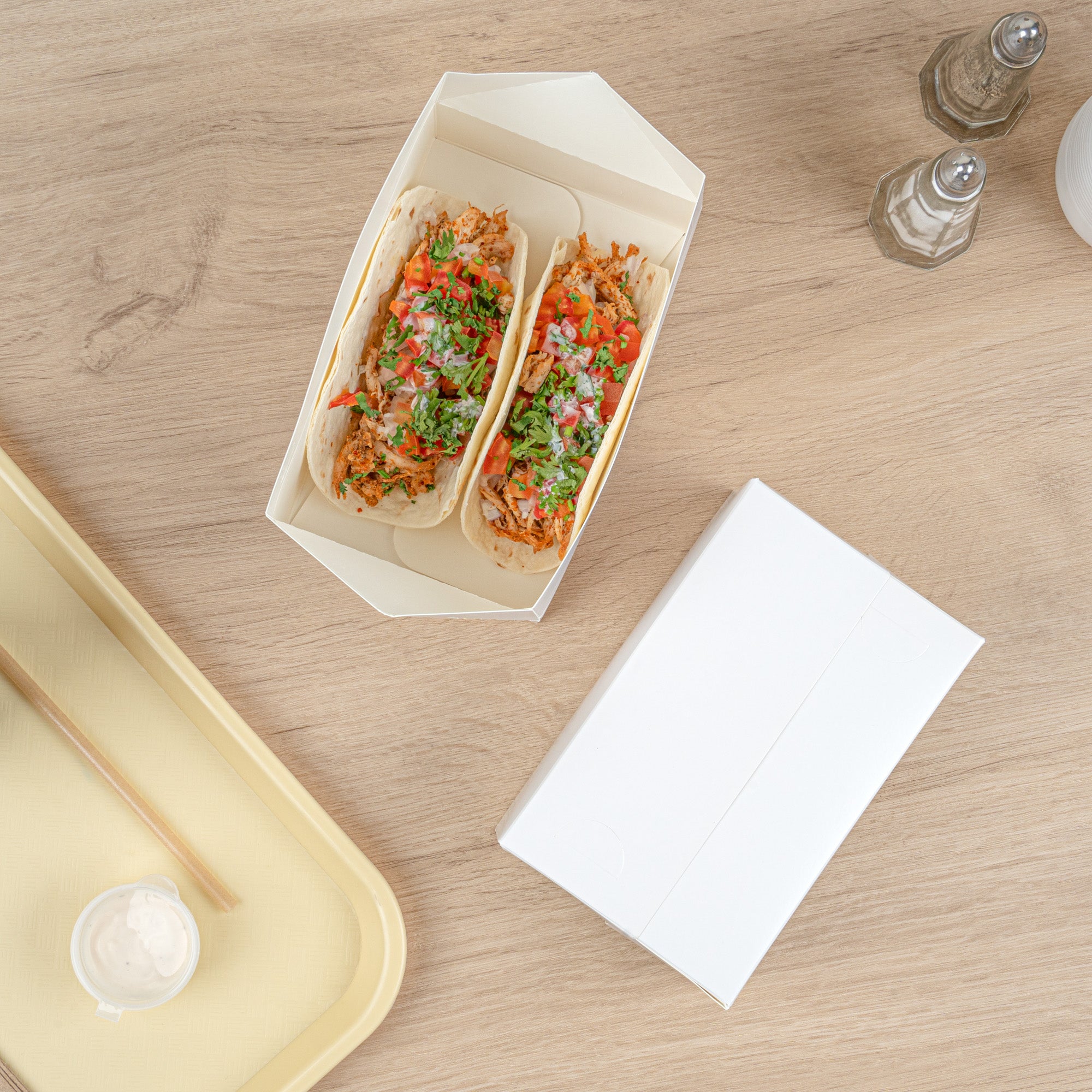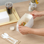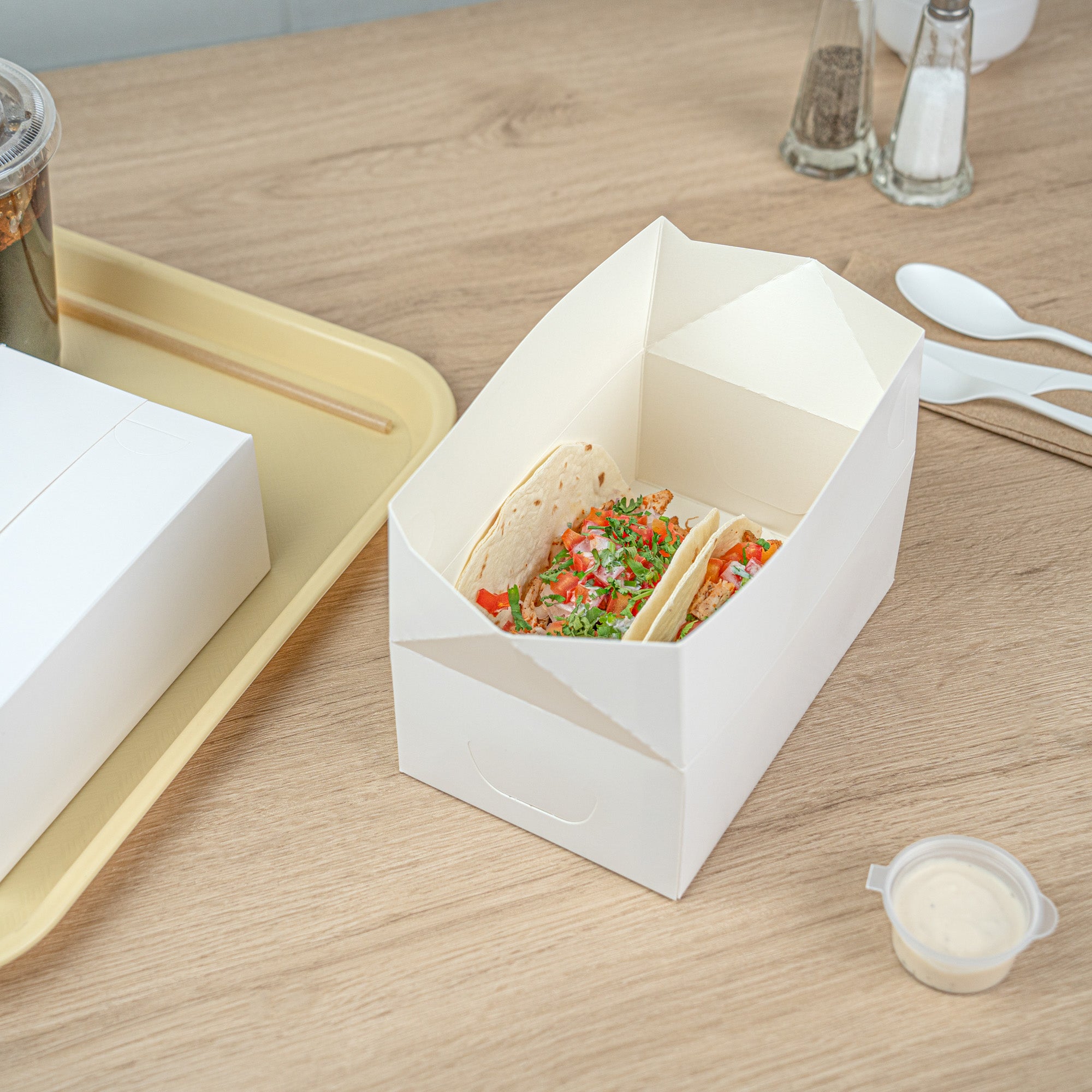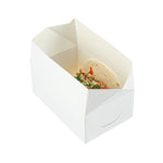 Ensure efficient service with fast top closures. The Bio Tek Spill-Resistant Paper Lunch Box provides a secure seal that keeps meals intact during transport. Made from premium paperboard, this paper lunch box offers a sturdy and reliable container that withstands the rigors of delivery. With a greaseproof lining, it prevents oils and sauces from leaking, maintaining the freshness and presentation of your dishes, making it ideal for busy foodservice environments. As a microwave-safe takeout box, it allows for convenient reheating, eliminating the need to transfer contents. Crafted from recyclable paper, this lunch box supports eco-friendly business practices by minimizing waste, catering to sustainability-focused establishments. Measuring 7 inches in length, it efficiently accommodates a variety of meals while supporting seamless operations. Elevate your takeout service and make cleanup a breeze with this recyclable lunch container. Each order includes 100 Bio Tek Spill-Resistant Paper Lunch Boxes.