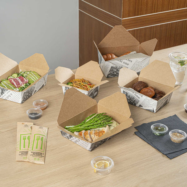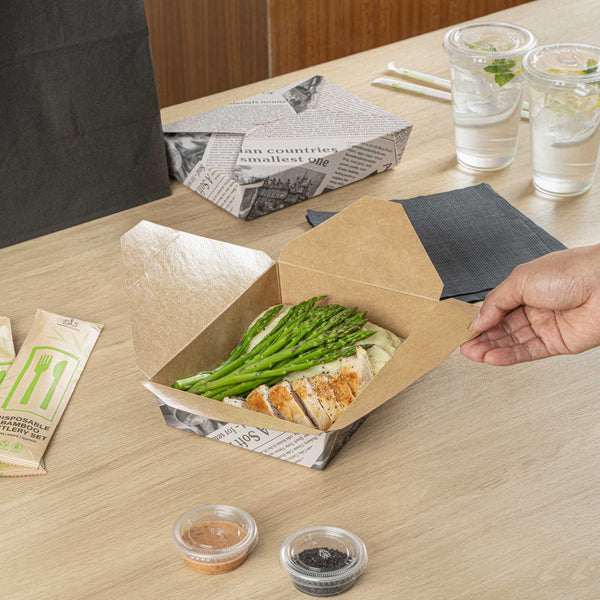 No matter the size of your dish, our disposable food boxes are available in different capacities to accommodate any meal. Choose from our soup, noodle, salad, or rectangle containers to easily pack and take food anywhere.