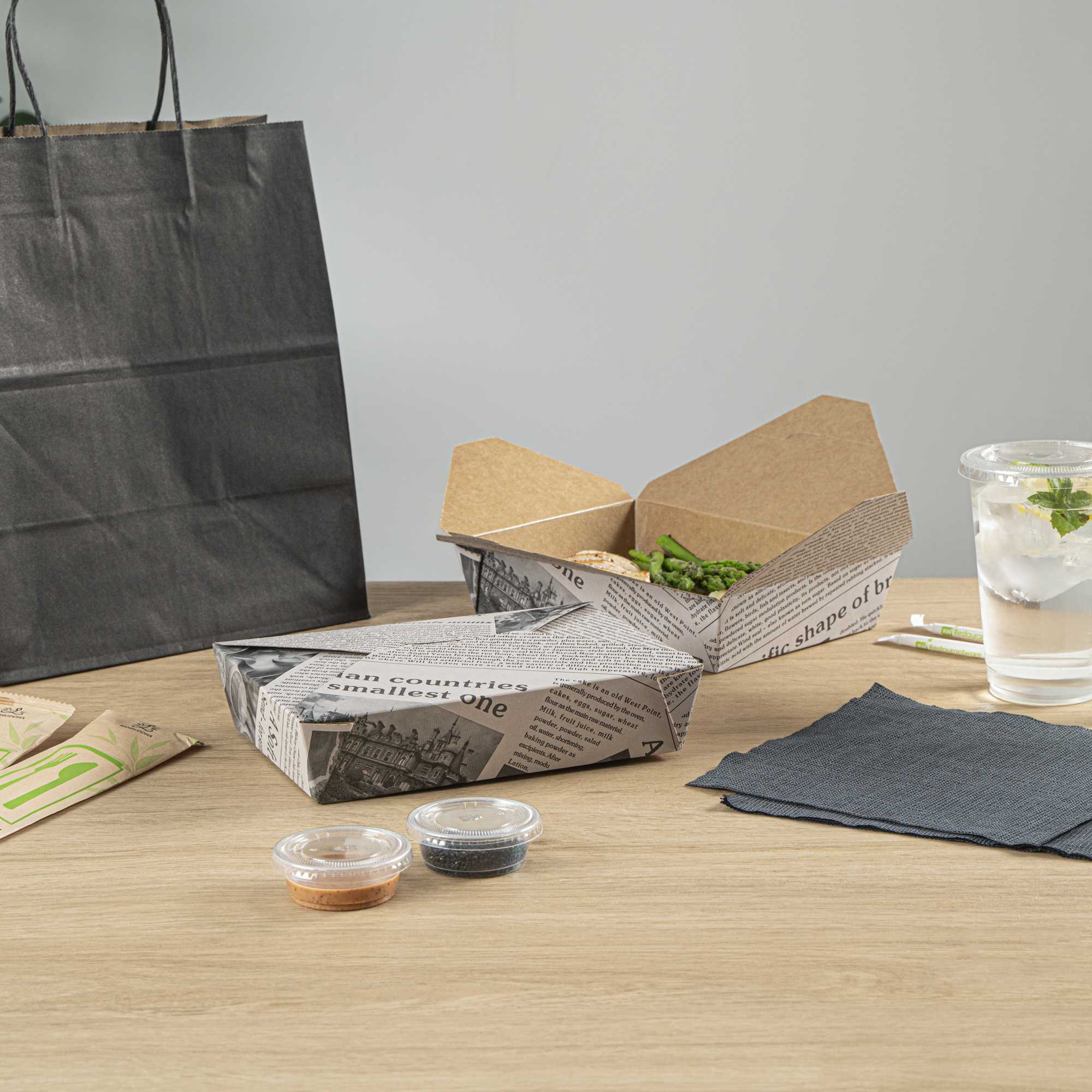 - Grease-resistant interior maintains packaging quality for takeout