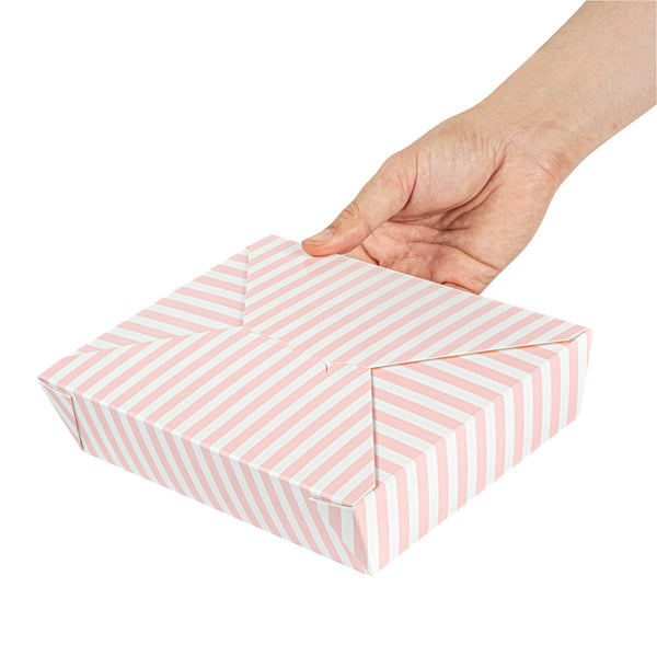 49 OZ PINK AND WHITE STRIPE PAPER #2 BIO BOX TAKE OUT CONTAINER