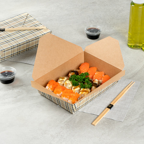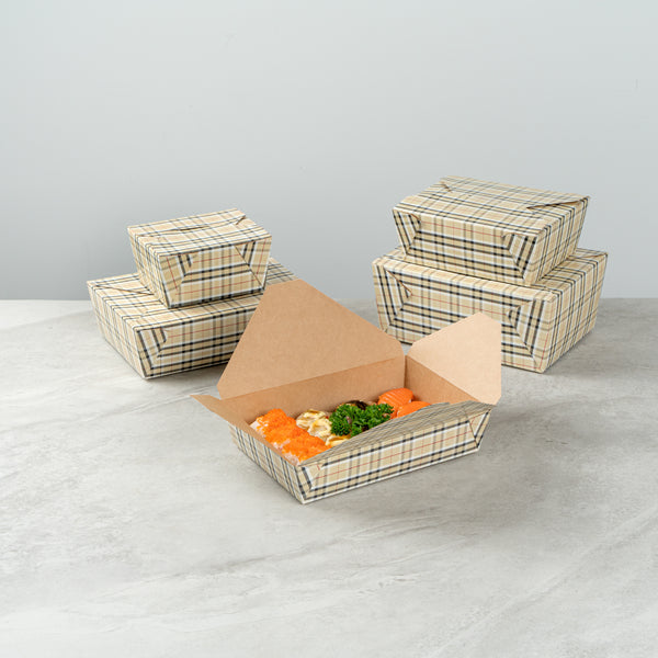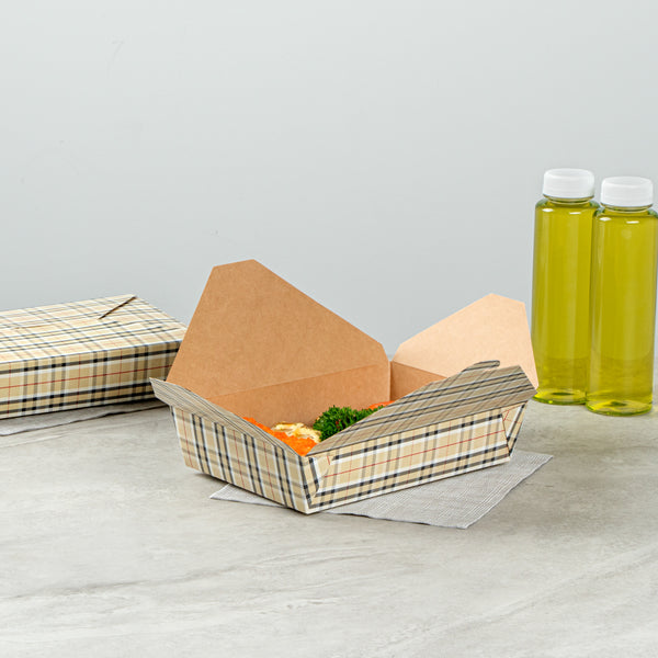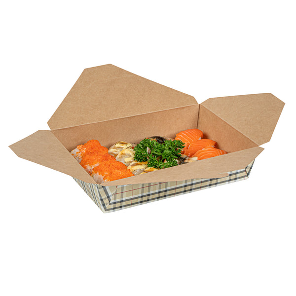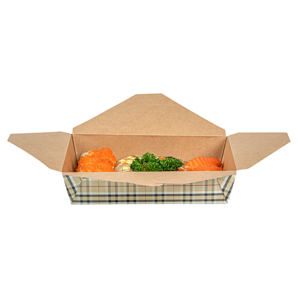 49 OZ RECTANGLE PLAID PAPER #2 BIO BOX TAKE OUT CONTAINER