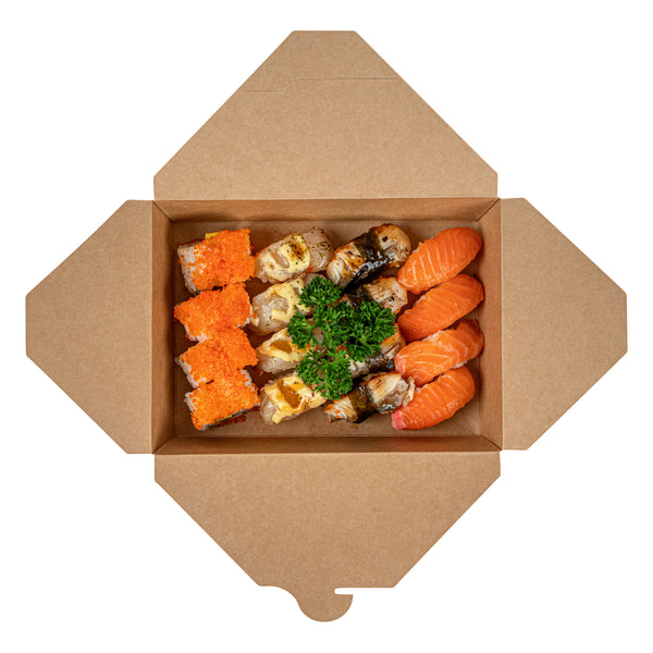 Providing an unmatched level of ease and portability, these bio boxes ensure a secure lock with their built-in tab lock, making for durable take out boxes. Their uniquely foldable design allows for easy storage, on-the-go functionality, and a minimalistic approach.
