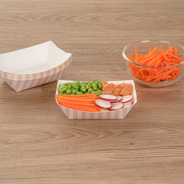 6 OZ PINK AND WHITE STRIPE PAPER #40 FOOD TRAY / BOAT