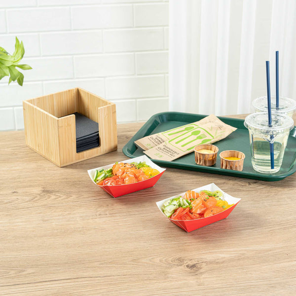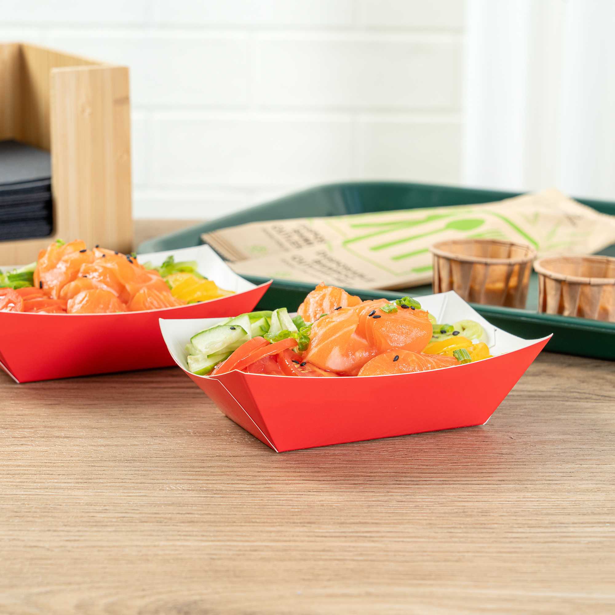 For a simple cleaning process for establishments and guests, these paper food boats are sustainably disposable. Reduce your impact on the environment!